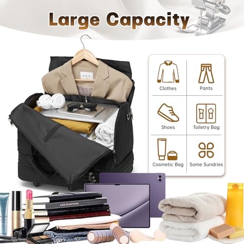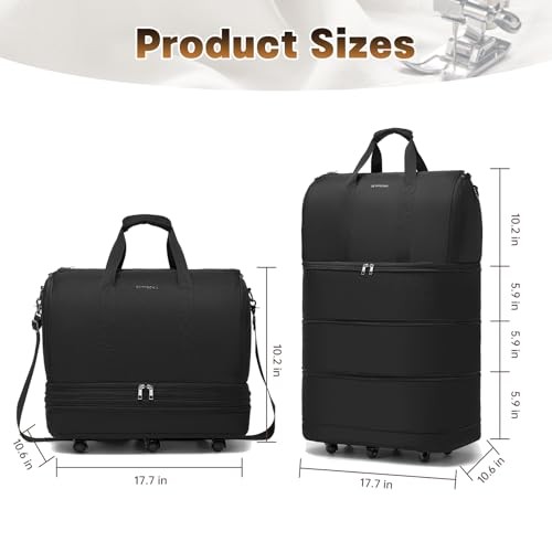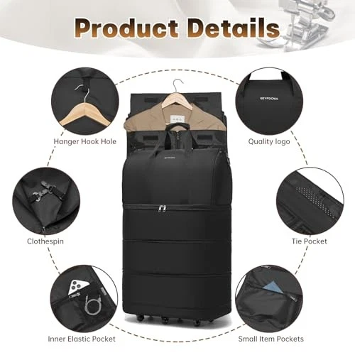 USA Stock Free Shipping 1-5 Days Fast Delivery Trusted seller Collapsible Rolling Garment Bags, Large Rolling Duffle Bag with Wheels Convertible Travel Garment Bag for Men Women Carry On Garment Bag for Travel Suitcase Suit Business Travel Bag, Black Product Description Expandable Extra-Large Capacity: This large wheeled duffle bag features a three-layer foldable expansion design, allowing you to increase capacity as needed. Fully expanded, it measures 17.7 x 10.6 x 27.9 inches with an 86-liter capacity, providing ample space for all your essentials. When not in use, it takes up minimal space at home and can be easily compressed for sto NO WRINKLE - GARMENT BAG: While the traveling garment bag is opened and lied out, it can be a great garment bag for travel. T are also 2 buckles inside to keep the garment flat without side movements during the trip and without wrinkle troubles of your dress or suits any more Multi-Purpose Design: This convertible garment bag seamlessly combines storage and travel functionality in an elegant design. It functions as both a hanging garment bag and a vacation suitcase, with multiple carrying options for effortless switching to suit any occasion. Designed for easy transport, it's perfect for family vacations, business trips, international travel, or moving Premium Materials: Crafted from durable, abrasion-resistant fabric, this rolling duffel bags with wheels is waterproof and tear-resistant. Equipped with 6 silent spinner wheels for smooth, quiet movement in any direction. Effortless to push or pull even when fully loaded Airline-Compliant: : This carry-on size perfectly meets airline requirements, weighing just 5.3 lbs. Fits easily in overhead bins or under seats. Use as carry on garment bag—perfect for any traveler, making it the ideal flight companion Shipping Returns Payment Shipping Shipping is FREE to all addresses other than APO/PO boxes in the lower 48 states. All our stock ships from US-based warehouses. Shipped via USPS or UPS (depending on location and package weight) Unless stated otherwise, all orders will ship within 24-72 hours of your payment being processed. Check our feedback to see the great reviews of FAST shipping we offer. Returns Seller does not accept returns Payment We currently accept payment via eBay managed payments only. Once payment is cleared, we will dispatch your shipment within 1-3 business days. Please refer to the "Shipping" tab for more information regarding shipping speed to your destination.