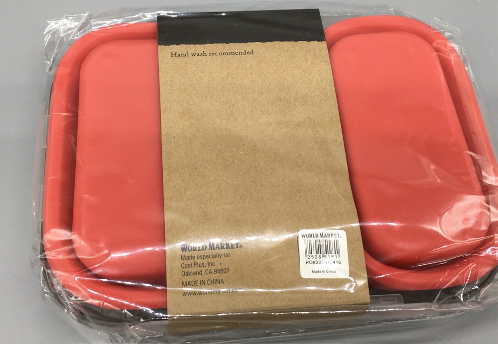 Capacity:24.7 oz & 15.2 ozMaterial:SiliconeShape:RectangularItem Width:See PictureCustom Bundle:NoType:Lunch BoxPersonalized:NoFeatures:Easy to Clean, Expandable, Reusable, With LidSet Includes:Spoon-forkBrand:World MarketItem Height:See PictureLid Type:Snap LidColor:RedCountry/Region of Manufacture:ChinaNumber of Compartments:2Number of Items in Set:1