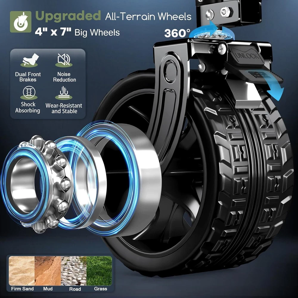 Description Features: 【. & 】: The space capacity is 7.67 cu ft/220L (36.81"D x 22.83"W x 24.17"H), 100% larger than other folding wagon carts, big enough for camping cooler, bags, etc.The folded size is only 1.37 cu ft, more compact, easier to fold, whether in the car's trunk, closet or garage. With the bottom pull cord, you can easily set up or put away this beach wagon in seconds! We also offer a oxford cloth packaging, easy to store and carry. 【 & 】: Upgraded stable steering structure keeps the folding wagon cart moving in a straight line without swaying from side to side or wheel collision.The handle can be rotated 90° back and forth, making it easier for people of different body sizes to use. The rebound function keeps the handle upright instead of bending over to reach it. These designs make the wagon easy and stable to pull, steer and maneuver. 【 】: The thickened heavy duty metal frames give this high quality collapsible wagon a static weight capacity of up to 460 LB and a dynamic weight capacity of up to 330 LB, more sturdy and won’t buckle or deform. The foldable wagon cart can easily carry camping tents, garden tools, beach chairs, and groceries. It is also equipped with 600D oxford fabric, tear-resistant, durable, waterproof, and easy to clean. 【° - - 】: The collapsible wagon has big all-terrain wheels( 7" x 4“) and 360° rotation front wheels. Dual front brakes prevent the wagon from sliding. Built-in double bearings bring smoother rolling over mud, grass and gravel.It is also a beach wagon with big wheels for sand. It is silent, shock-absorbing and wear-resistant for beach、shopping、lounge、grocery、 garden、 picnics、 camping、 sports 、fishing and concerts. 【 , 】: Hikemoon collapsible wagon cart :36.81"D x 22.83"W x 24.17"H, : 12.59"D x 8.98"W x 24.17"H, : 7" x 4“ , : 42.91".Attached with one oxford side pocket and two cup holders, providing convenience for cups and special things. 【 】: Hikemoon foldable wagons comes with a .Please if there is any question about the collapsible utility wagon.We'll get back to you within 24 hours. Product Details: Product Dimensions: 36.81"D x 22.83"W x 42.91"H Brand: HIKEMOON Material: Metal Color: Black Special Feature: Collapsible Foldable Wagon, Larger Weight Capacity, Smaller Folded Size, Easy to Fold, Sturdy Heavy Duty Metal Structure, Adjustable Handle Collapsible Foldable Wagon, Larger Weight Capacity, Smaller Folded Size, Easy to Fold, Sturdy Heavy Duty Metal Structure, Adjustable HandleCollapsible Foldable Wagon, Larger Weight Capacity, Smaller Folded Size, Easy to Fold, Sturdy Heavy Duty Metal Structure, Adjustable Handle See more Handling We will ship all orders within 1 business day of payment. Delivery We Do Not Ship Outside of the Continental US. Return Policy All items qualify for returns within 30 days of receipt. Buyer is responsible for return shipping on any item that is not damaged. Feedback We take our reputation seriously, we buy and sell online, so we understand the value of trust. If you are unsatisfied with your order, please contact us and we will work with you to resolve it to your satisfaction.