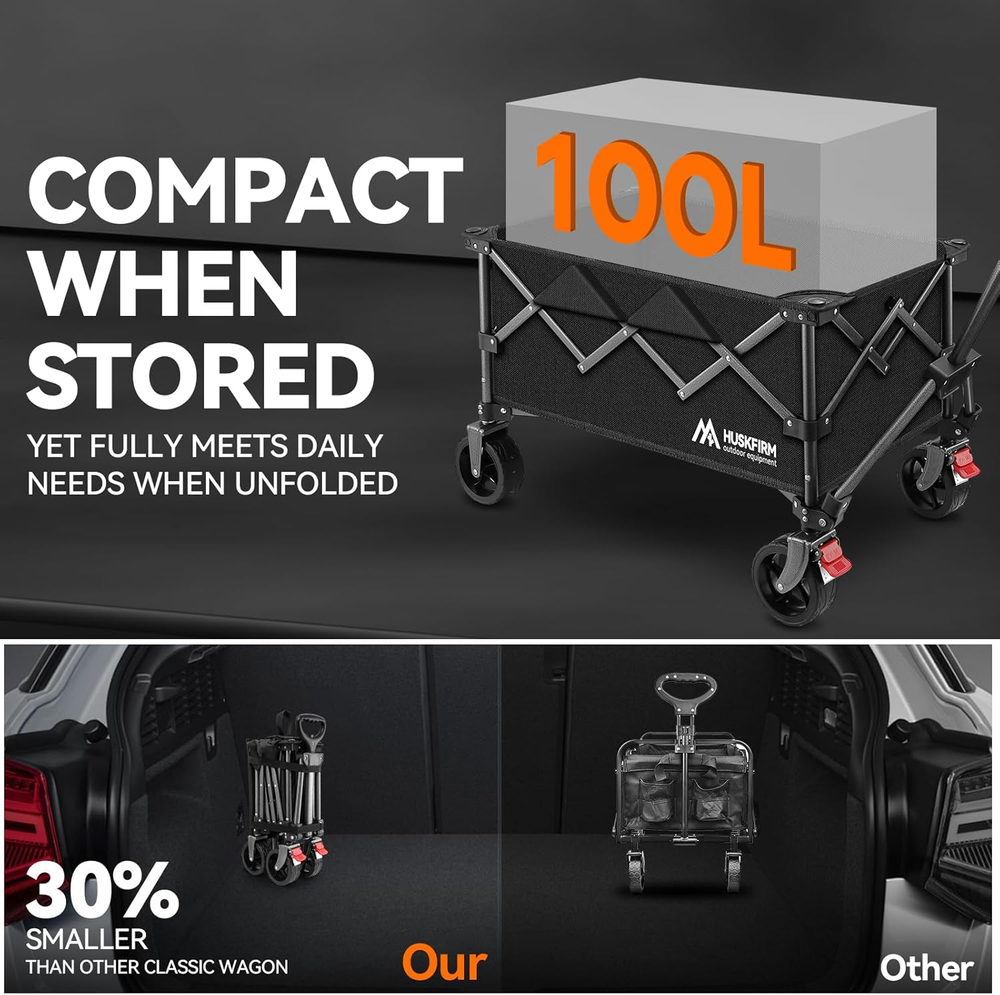 This collapsible wagon has been a total game-changer for all my outdoor adventures and grocery runs! It's surprisingly sturdy yet lightweight, folding down compactly for easy storage. The smooth-rolling wheels handle any terrain effortlessly, making hauling heavy loads an absolute breeze.