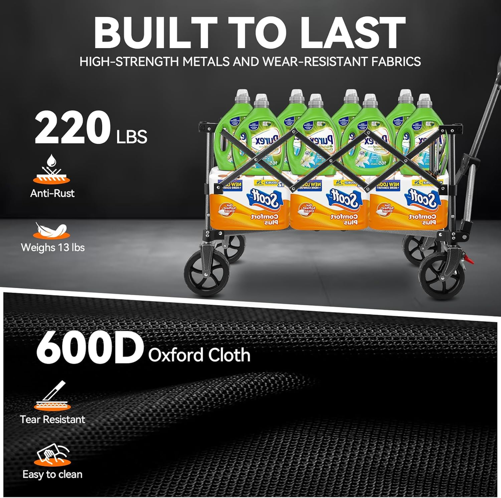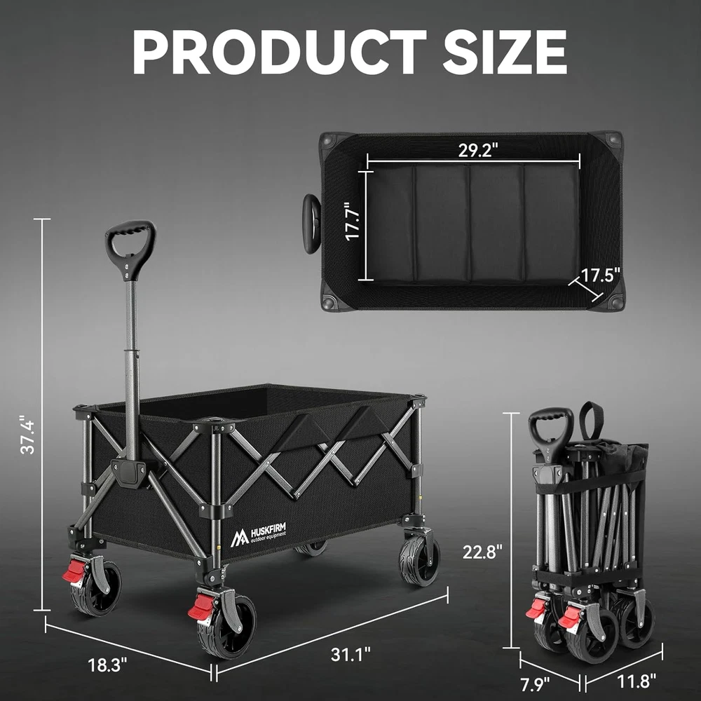 Store New Arrivals Add to Favorite View Feedback Contact Collapsible Wagon Cart with Wheels Foldable Compact Grocery Wagons with 220LBS Weight Heavy Duty Folding Utility Portable Wagon for Groceries, Sports Garden Camping Fishing Description Assembly Required Yes Special Feature Lightweight, Collapsible, Compact Product Dimensions 11.4"D x 8.7"W x 25.2"H Material Alloy Steel Country of Origin China Item Weight 12 pounds Handle Material Aluminum Caster Type Swivel Frame Material Alloy Steel Number of Shelves 1 Tire Type Tubeless Number of Wheels 4 Recommended Uses For Product Outdoor Target Audience Unisex Adult Weight Limit 220 Pounds 【SUPERIOR MATERIAL UTILITY WAGON】Our grocery wagon foldable is made of heavy-duty alloy steel frame with reinforced welded construction, it can carry up to 220 LBS. The metal frame surface is oxidation and corrosion-resistant, and will not fade or rust even after long-term outdoor use. The 600D Oxford fabric is tear-resistant and easy to clean, ensuring durability. 【EASY MANEUVERING, SMOOTH TRANSPORTATION】The folding wagon cart with wheels is equipped with four 6.7“ wide wheels with double-bearing structure, 360 degree free swivel of the double-brake front wheels and ergonomic retractable handles, which allows smooth maneuvering even when full of cargo, and it can conquer all kinds of terrains. 【TINY VOLUME BUT LARGE CAPACITY】Our portable wagons collapsible has a capacity of 100L and unfolds to 31.1 “L x 18.3 ‘W x 37.4’ H. Perfect for hauling a load of groceries home from the store, it helps simplify the transportation of heavy loads by pulling gently and lightening your transportation burden. 【QUICK UNFOLD & SPACE SAVING DESIGN】This pull wagon cart foldable unfolds and folds in seconds, when folded it measures 11.8 “L x 7.9 ‘W x 22.8’ H and weighs only 12 pounds, it can be easily put into any car to provide you with the maximum space for your travel and storage. 【MULTI FUNCTIONAL WAGON ESSENTIAL FOR DAILY LIFE】The foldable lightweight wagon is an indispensable tool in your daily life, it is also suitable for family outings, gardening, fishing and sporting events or wherever you want to go, to meet your daily needs, any questions, we are happy to be available for you within 24 hours. Product Description 1 DUAL BRAKE 2 EASY TO HANDLE 3 EASY TO CLEAN 4 EXCELLENT MATERIAL 1 SHOPPING 2 FISHING 3 GARDEN 4 CAMPING ABOUT US We offer the best prices around on high quality products. Our E-store includes media such as books, movies, music and games while offering electronics, toys, sporting apparel, clothing, tools, general home, garden items and more. SHIPPING We are always working hard to ensure your package arrives as soon as possible. Please understand that some factors like weather, high postal traffic, and the performance of shipping companies are outside of our control. We offer free shipping to the lower 48 states and ship within 2 business days of payment, usually sooner. We do not accept P.O. Boxes. Please provide a physical address. For shipping outside of the continental USA, we only use eBay's Global Shipping Program.The item is shipped to KY and then sent to the rest of the world. International customers are responsible for all duties and taxes. Continue to check out in order to calculate costs for shipping the item to your country. Messages regarding eBay's Global Shipping Program MUST be directed at eBay EXCLUSIVELY. RETURNS We offer a 30-Day Return Policy on items which you are not completely satisfied with. You have the option for a full-refund or an exchange of the item. No returns are available on items shipped outside of the USA. PAYMENT We accept PayPal. CONTACT US This page content is yet to come Please ad us to your favorite seller and visit again later Thank You CUSTOMER SATISFACTION We try our very best to make sure every customer is completely satisfied. If there's a problem, message us! We're happy to help. WE ACCEPT Copyright © 2021 AutoDS. | All Rights Reserved