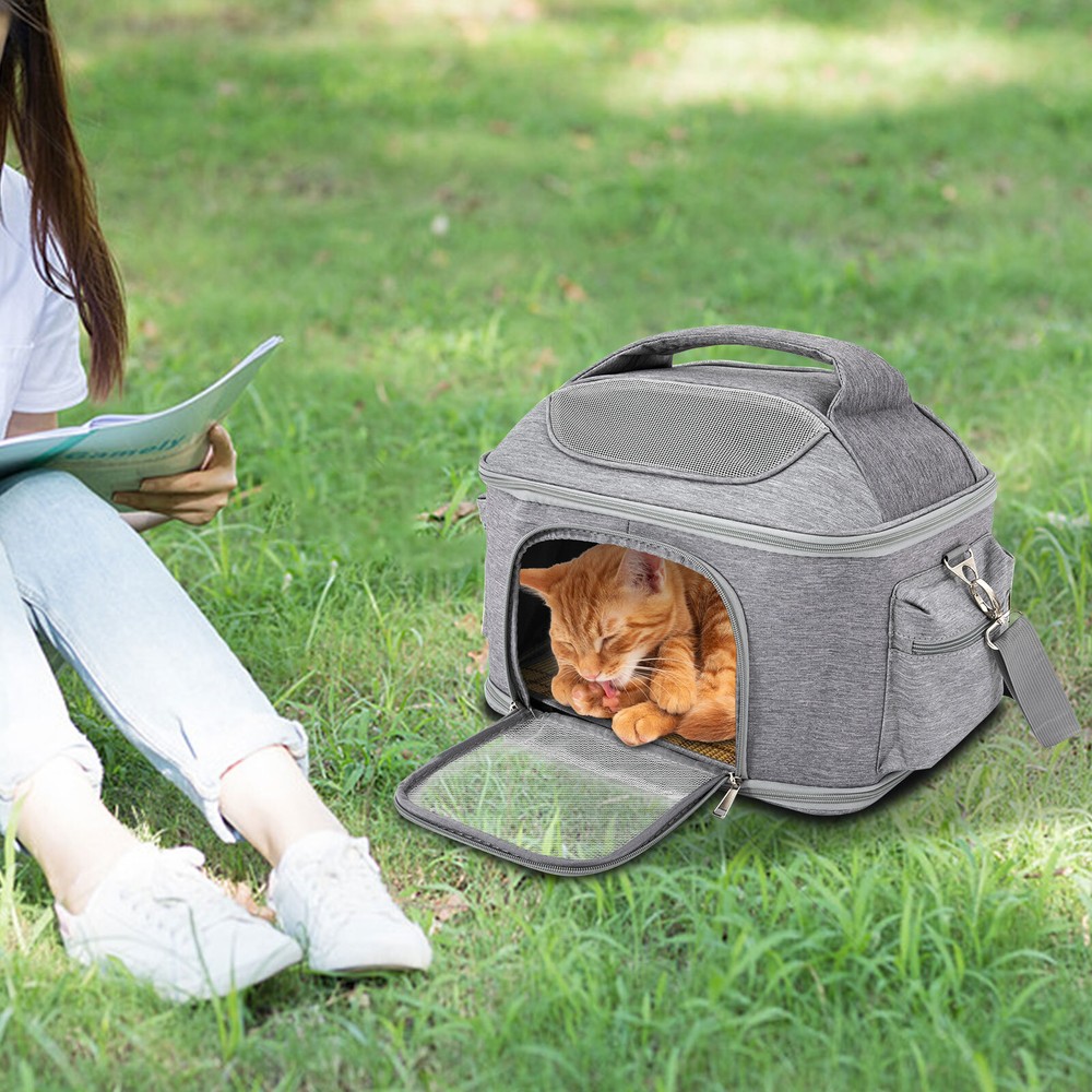 This collapsible pet carrier is a game-changer for travel! The waterproof Oxford fabric is sturdy yet lightweight, and the adjustable shoulder strap makes carrying my 6kg pup a breeze. It folds down compactly when not in use, saving so much space. The modern grey design looks sleek, and the mesh panels keep my pet comfy with great airflow. Perfect for vet visits or weekend trips—highly recommend for small to medium pets!