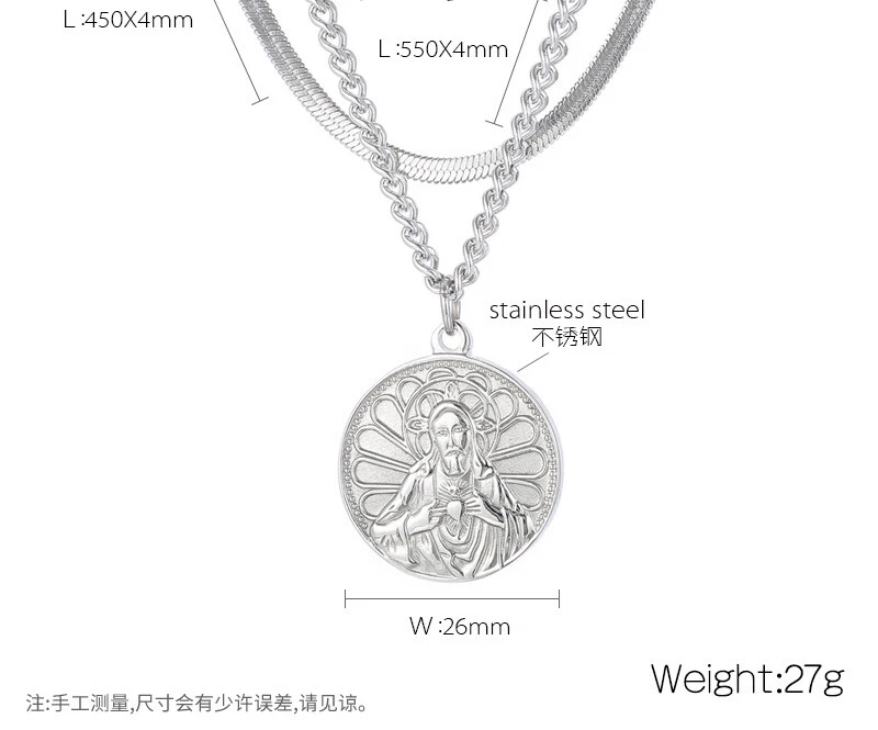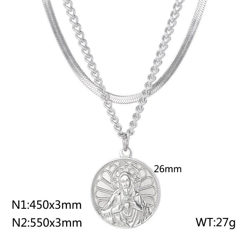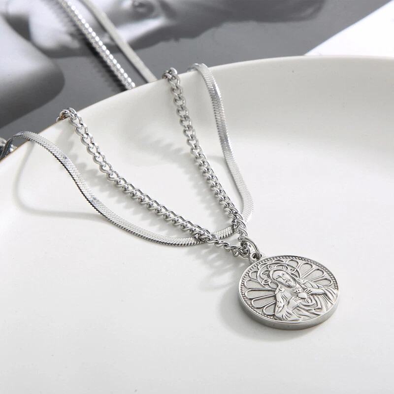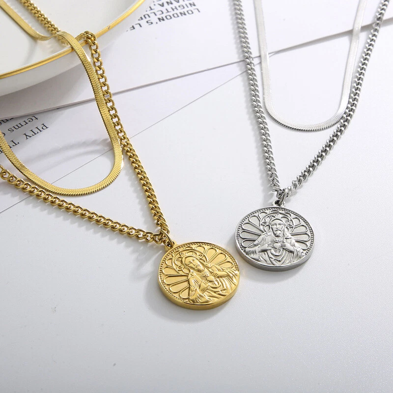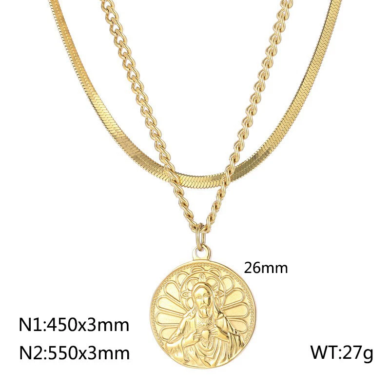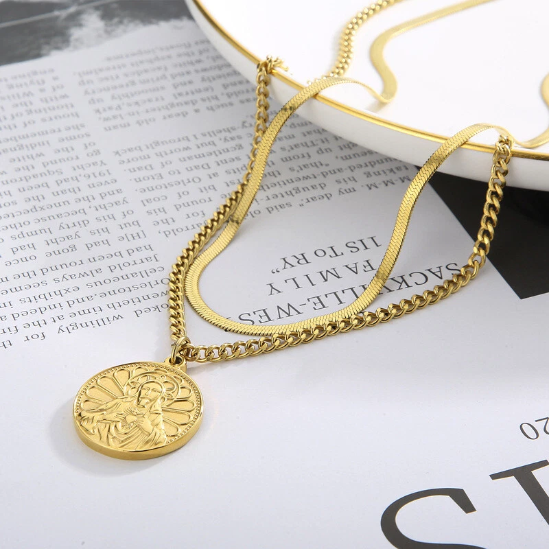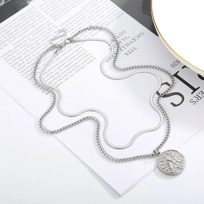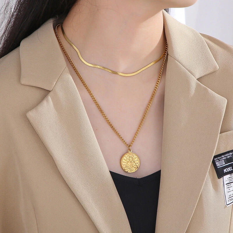 Collar etiqueta titanio acero vintage chapado en oro doble capa cadena de uso