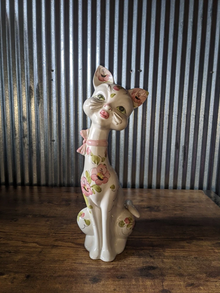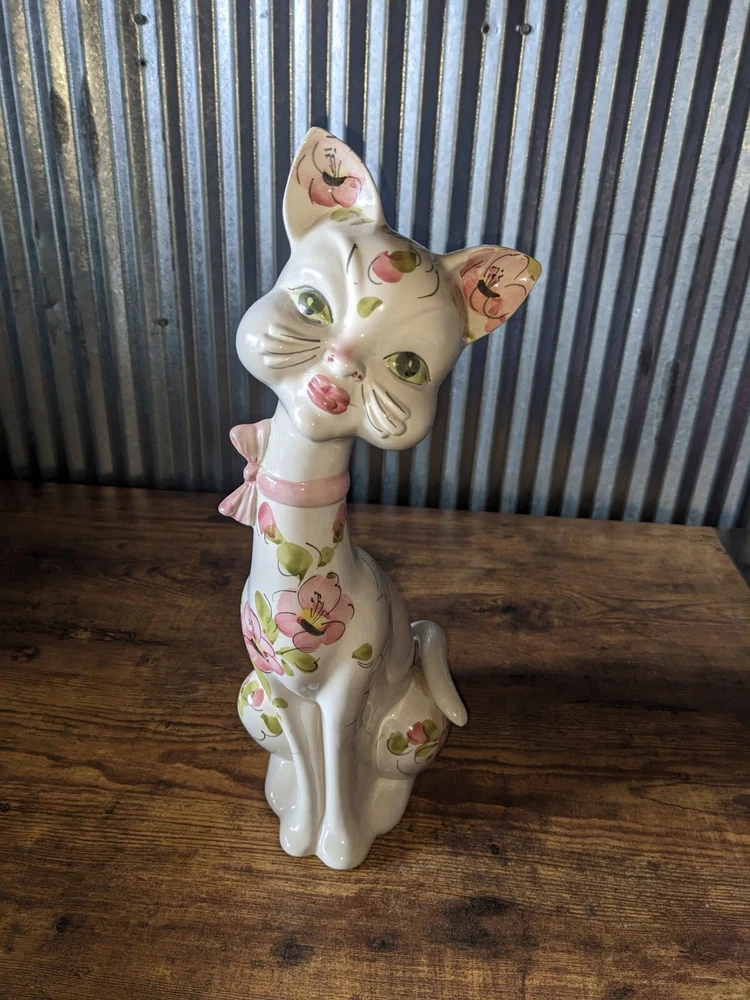 Collectable 22" Long Neck Vintage Porcelain Cat Made In Italy