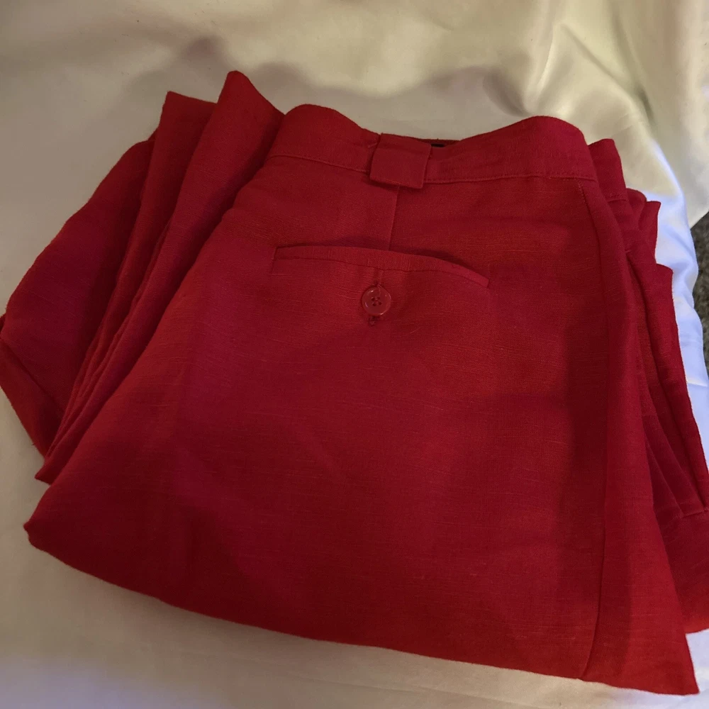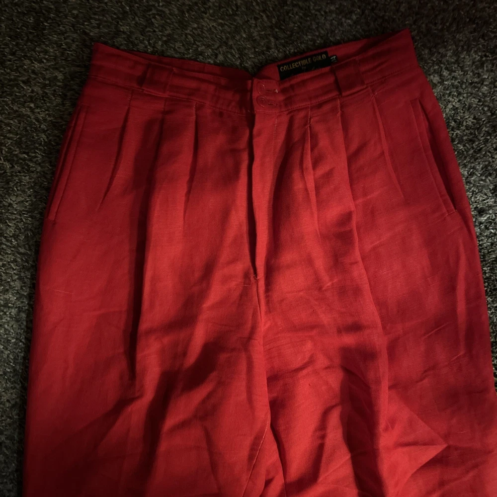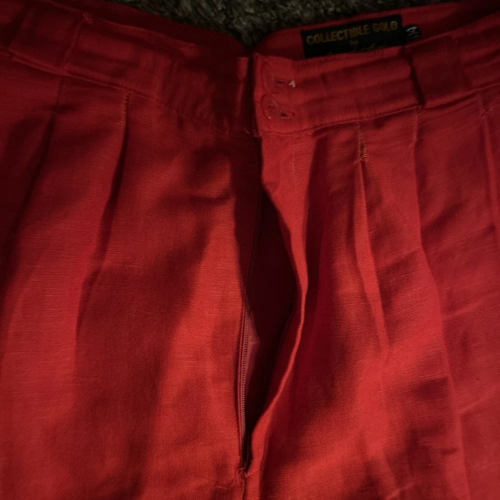 Collectible Gold Giorgio Sant Angelo Linen Rayon Red Pants Womens Size 14 Pleats. Condition is Pre-owned. Shipped with USPS Ground Advantage.