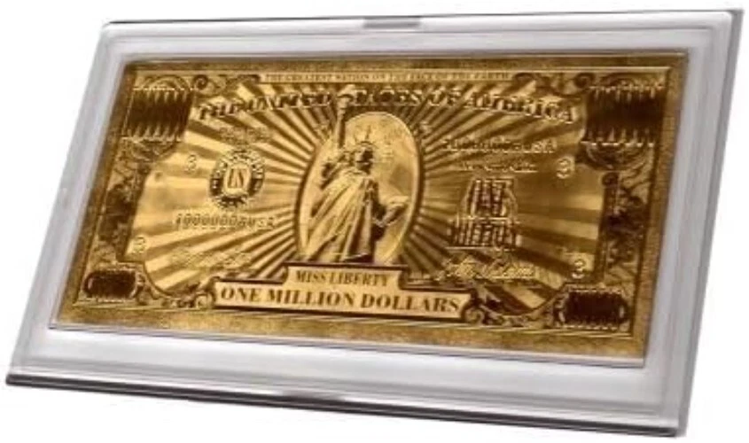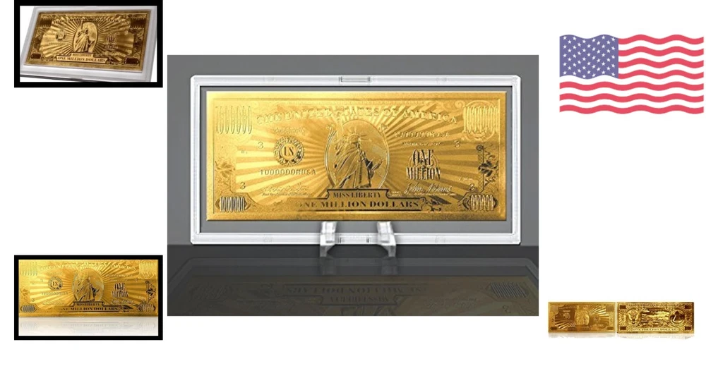 Collectible Gold Million Dollar Bill - Certified Authentic - Made in USA ‹ › ‹ › ‹ › ‹ › ‹ › ‹ › ‹ › ‹ › Collectible Gold Million Dollar Bill -Certified Authentic - Made in USA Features: Each banknote is layered in 24 Karat Gold. Enclosed in collectors quality currency holder. Certified authentic by holographic seal. Made in the USA. Benefits: A unique and valuable collectible item. Perfect as a gift or keepsake. High-quality craftsmanship and attention to detail. Authenticity guaranteed by holographic seal. Proudly made in the USA. Why choose our Collectible Gold Million Dollar Bill? Looking for a unique and valuable collectible item? Look no further than our Collectible Gold Million Dollar Bill. Each banknote is layered in 24 Karat Gold and comes enclosed in a collectors quality currency holder. With a holographic seal certifying its authenticity, this bill is a great gift or keepsake for any occasion. Plus, it's proudly made in the USA, ensuring high-quality craftsmanship and attention to detail. Don't miss out on this one-of-a-kind collectible - order your Collectible Gold Million Dollar Bill today! Shipping Free & Fast Shipping - We offer free shipping to most of the USA with a normal delivery time of 3-7 days. However, due to the current situation, additional delivery time (up to 3 weeks) may be required for some items. Alternative Carriers - We may use alternative carriers (e.g. USPS, FedEx, UPS, etc.) to ensure your package arrives safely and on time. Due to the use of multiple carriers, we are unable to provide a tracking number automatically. Handling Time - Orders are processed and shipped within 1-2 business days of receiving cleared payment. Shipping Restrictions - Shipping to Alaska, Hawaii, Puerto Rico, Guam, and other US territories may incur shipping charges or delivery restrictions. Please contact us before ordering, or your order can be refunded/cancelled. State Restrictions - There may be restrictions based on your state of purchase. For example, certain items may not be shipped to California due to state regulations. Contact for Tracking Updates - If you require tracking updates or have any concerns about the delivery of your order, please feel free to contact us, and we will be happy to assist you. Return 30-Day Hassle-Free Returns - We want you to be completely satisfied with your purchase. If you are not, you can return the item within 30 days of receiving it for a full refund or exchange. Easy Return Process - To start a return, simply contact us and we will provide you with a prepaid return shipping label and detailed instructions. Restocking Fee - There are no restocking fees for returns. However, the buyer is responsible for return shipping costs if the return is not due to a seller's error. Refund Processing Time - Refunds will be processed within 5 business days of receiving the returned item in its original condition. Payment We accept all major credit cards, PayPal, and Apple Pay for your convenience. Your payment information is secure and encrypted to ensure a safe and seamless transaction. Please complete your payment within 3 days of purchase to avoid any delays in shipping. Feedback Your feedback is extremely important to us. We strive to provide the best products and customer service possible. If you are satisfied with your purchase, please take a moment to leave us a positive review. If you have any concerns or issues with your order, please contact us before leaving negative feedback. We are committed to resolving any problems and ensuring your satisfaction. Contact Us If you have any questions or concerns, please feel free to reach out to our customer support team. You can contact us through the eBay messaging system. We are available Monday to Friday, 9:00 am to 5:00 pm EST, and we will do our best to respond to your inquiry within 24 hours. Thank you for supporting our small family business!