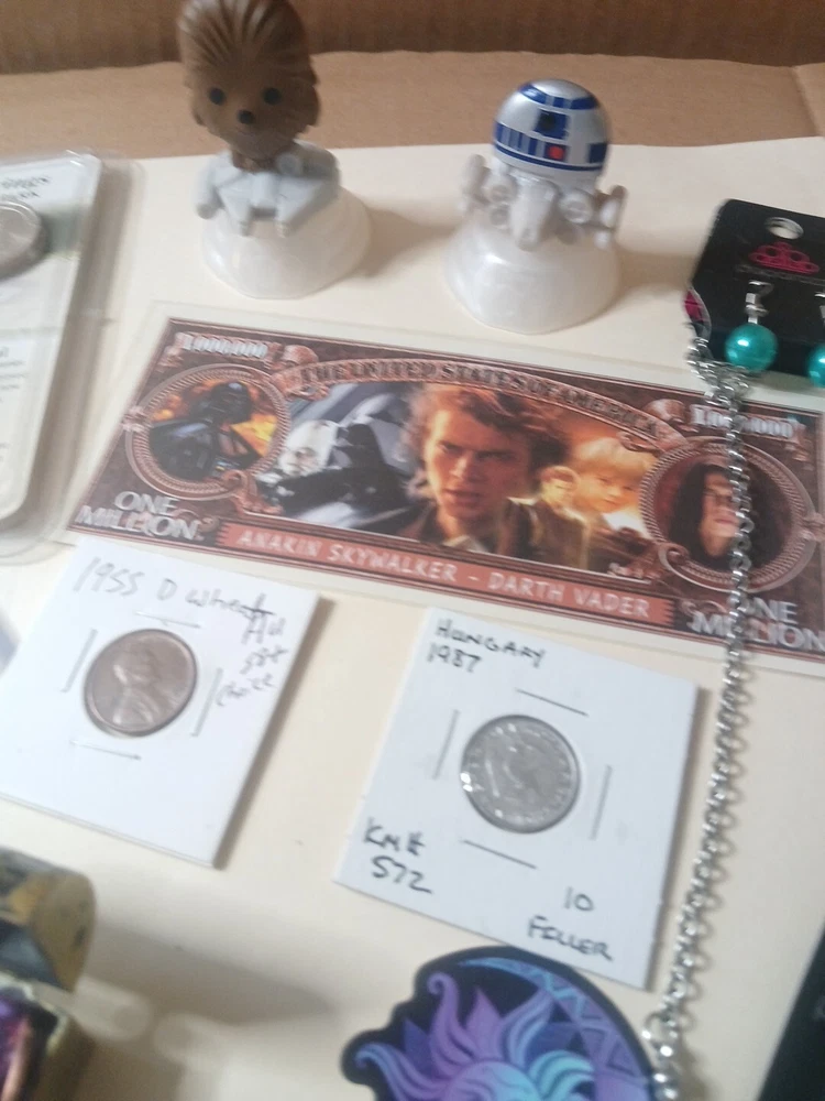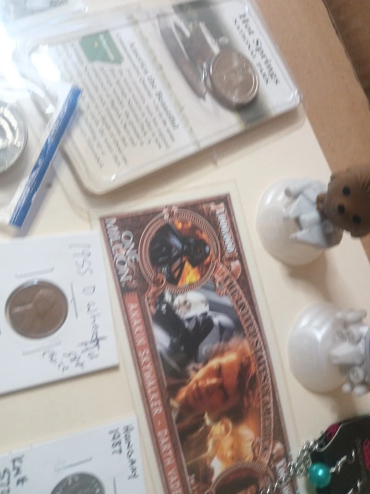 Lot#3 This is a collectible junk drawer coin lot from the United States, featuring various items such as an 1897 Indian Head coin, a 1997 JFK Unc coin, and Star Wars collectibles. The lot includes over 20 items and is a mix of different collectibles, making it perfect for collectors or those interested in a variety of items from different eras. The lot offers a diverse range of collectibles that may appeal to a wide range of collectors.