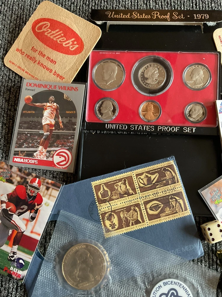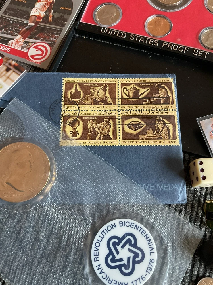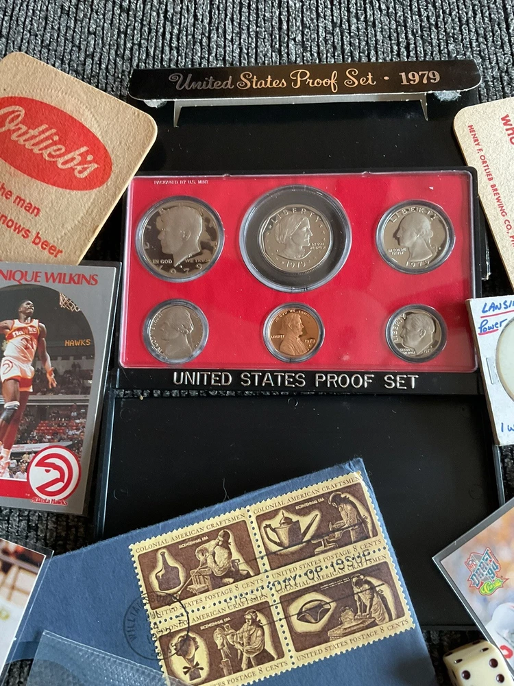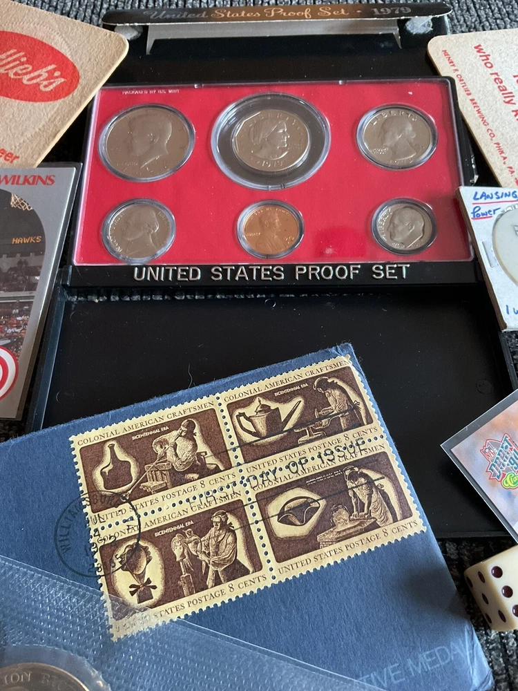 Beautiful 1979S United States proof set with Susan B Anthony, the American Revolution bicentennial commemorative coin with George Washington in the original envelope with the commemorative stamps and so much more
