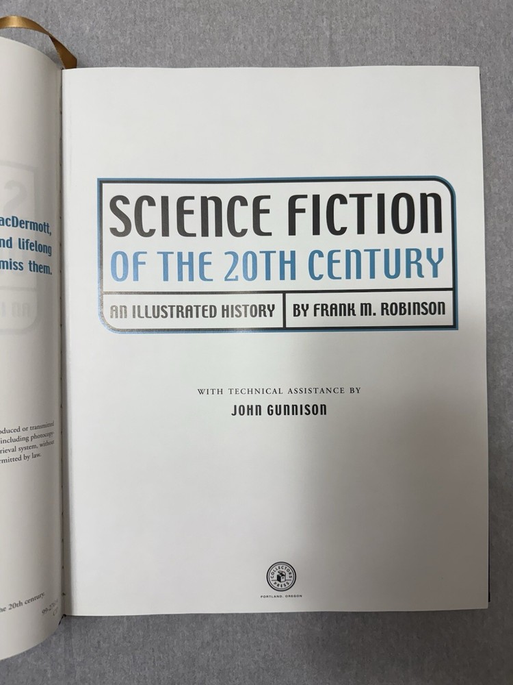 Dive into the expansive world of science fiction with the "Collectors Press Science Fiction of the 20th Century" edited by Frank M. Robinson. This leather-bound collector's item, is a must-have for enthusiasts seeking a comprehensive journey through the genre's Golden Age. Each page is adorned with stunning illustrations that bring the tales to life, complementing the rich tapestry of storytelling. Oversized and meticulously crafted, this reference book is not just a collection of stories; it's a celebration of science fiction literature, making it a prized addition to any bibliophile's shelf.