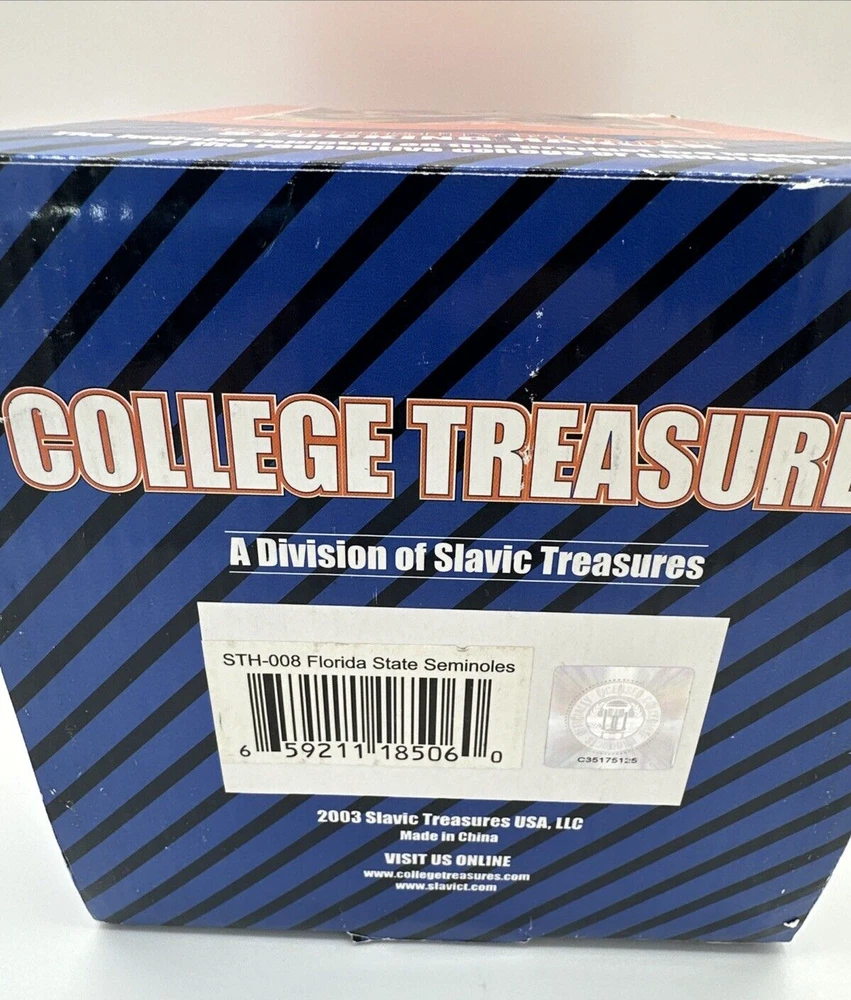 Show off your team pride this holiday season with this College Treasures Florida State Christmas Stocking Holder. Perfect for any fan of the Florida State Seminoles, this stocking hanger features the team's iconic logo and colors of red and yellow. It's a great addition to any collection of fan apparel and souvenirs, and is sure to be a conversation starter during the festive season. This product is designed for unisex adults and is licensed collegially, ensuring that you are getting a high-quality and authentic product. Get ready to show off your team spirit this holiday season with this unique and fun stocking holder! Measures 7"x4.5"x3" plus hook. **Pre-owned condition. The stocking has broken off but is included. Could be glued back on. See photos.
