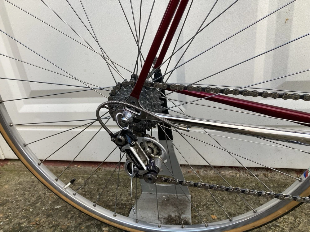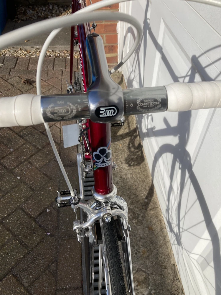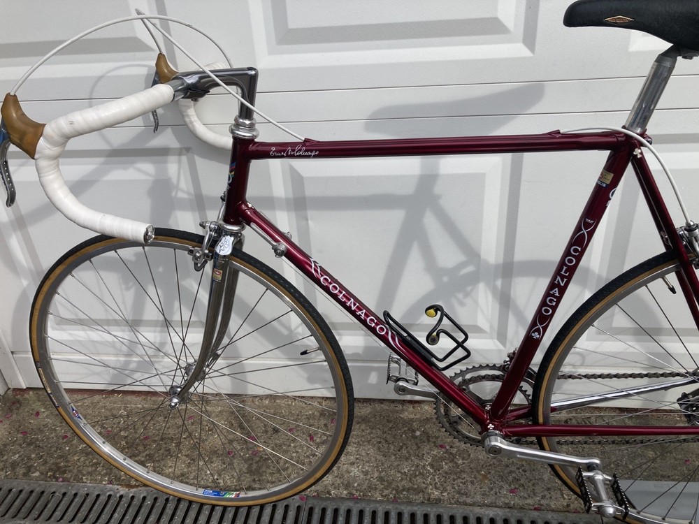 This superb Colnago ESA Mexico Road Bike is priced for a quick sale. These were produced between 1987-89 making this one of Colnago’s super rare bikes. The SL frame has a 56cm top tube and a 58cm downtube and is super light for the era and comes with top spec Campagnolo Super Record 6 speed groupset, 3tt components and Italian Nisi HR22 Clinchers wheels with campagnolo record hubs. It’s in very good original condition for a bike of this age. Please review pictures to appreciate this. If you know your bikes then you’ll appreciate the absolute quality of this high quality vintage Colnago. Would suit someone 5’10” and above .