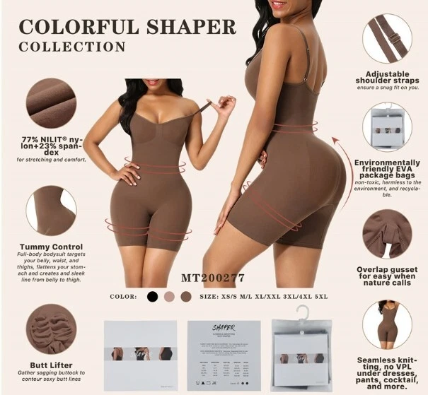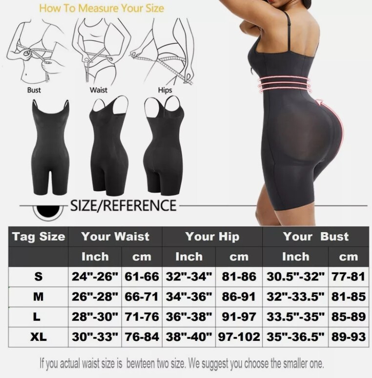 DESCRIPTION Hook and eye closure Please feel free to contact us if you have any questions about our Women's Waist Trainer Thigh Slimming Butt Lift Bodysuit, we are always happy to serve you. Full body shaping solution. This women's one-piece corset provides firm compression control, chest support and hip lift to your tummy/abdomen/waist/thighs, instantly giving you smoother, slimmer hourglass curves. Easy to put on and take off, comfortable for everyday wear! Tummy Tuck Shapewear. This tummy tuck panty shapewear is neatly cut and high enough at the waist, and the front and back double-layer fabric helps you flatten belly fat, reduce your waistline, control your waist, and suck in your tummy with moderate compression, instantly giving you a smoother, slimmer look. Hip lifting boxer shorts bodysuit. High-waisted thigh slimming shapewear with boxer briefs will help slim your upper thighs and prevent the jumpsuit from rolling up. It has a shorts panty section that lifts your hips nicely under the skirt! C omfortable waist shaper This waist training jumpsuit is made of top quality lightweight fabric that is stretchy, soft and breathable. It has a double layer of control over the tummy area and no steel boning so it's more comfortable to wear throughout the day. Breathable material 30% spandex + 70% nylon, comfortable, soft, breathable, not stuffy. Package Description. Shapewear X 1 100% Customer Service We always focus on customer experience. If you have any dissatisfaction, you can contact us and we will do our best. Create a shopping experience that makes you satisfied.