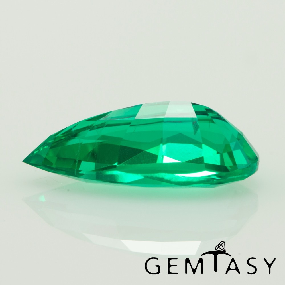 The item description details: Lab-created Colombian Emerald ( recrystallized from natural emerald ore) Growing method: Hydrothermal Emeralds created by hydrothermal process carries the same physical and chemical properties as natural emeralds. Advantages of the hydrothermal method: the method allows to grow a bigger size and better clarity that rarely can be found in nature Color: Colombian Emerald color (green with bluish tint) Clarity: Slightly contains inclusions Cutting Quality: very good Shape: Pear Size: 10x5mm height 3.2-3.5mm Weight: 0.97-1.06ct For wholesale, please send request with desired quantity and size IMPORTANT NOTE We t ry our best to capture best images for our items. However, please be aware of the actual colors may vary slightly from the color shown on your screen, as it depends on a monitor color reproduction. The weight of the item might be vary depends on a scale calibration. SHIPPING POLICY Handling Time: Your order will be shipped within 2 working days upon receiving the payment Shipping Time: 1. Post of Thailand Standard International Shipping takes approximately 30 days, depending on country & remote location. 2. FedEx International Priority delivers goods within 5 working days, depending on country & remote location. Customers are responsible for duties and VAT charged by their country of residence. We recommend you contact your local customs office if you have any questions concerning tax and duties. RETURN POLICY We are confident that our jewelry will meet your expectations, as your satisfaction is our priority. However, in case of any damages happens while delivery the Buyer may return the Goods. 1. The Buyer shall inspect the Goods and notify us about damages within 3 days after receiving the Goods. 2. In case of return, the Goods must be returned in its original condition. The Buyer is responsible for return shipping charges. Return shipping charges, duties and taxes (if any) are not refundable. Your satisfaction is important for us! Please contact us if you have any questions or feedback. We aim to provide the best possible support to our customers and s tanding behind every sale.