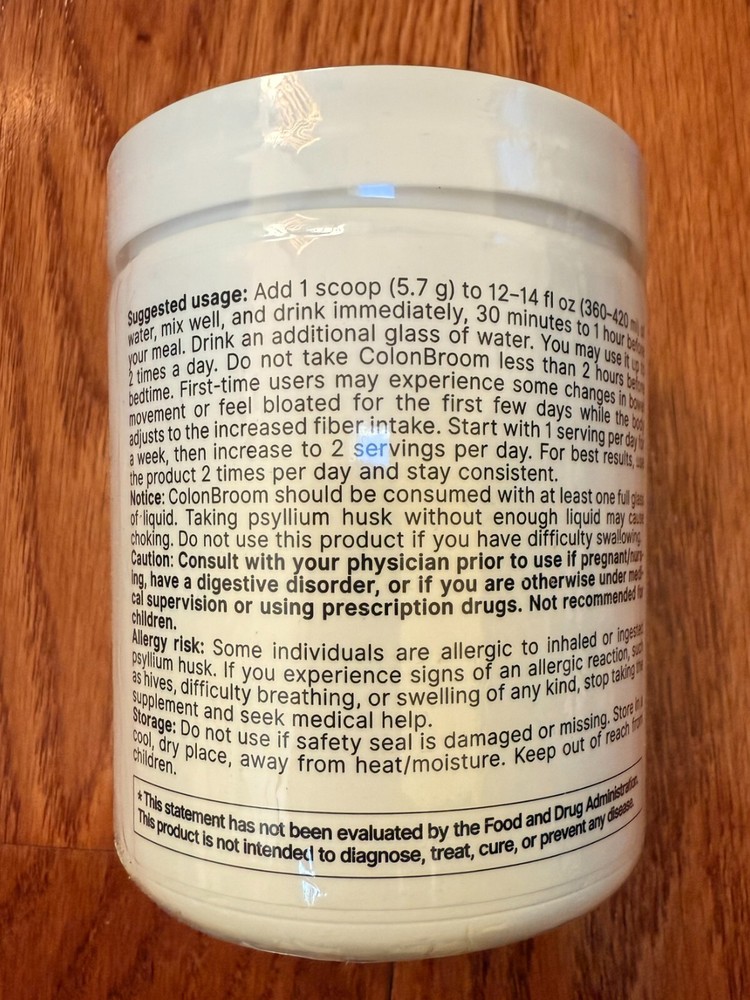 Colon Broom Strawberry Flavor Dietary Fiber Supplement 60 Servings Exp 06/2026