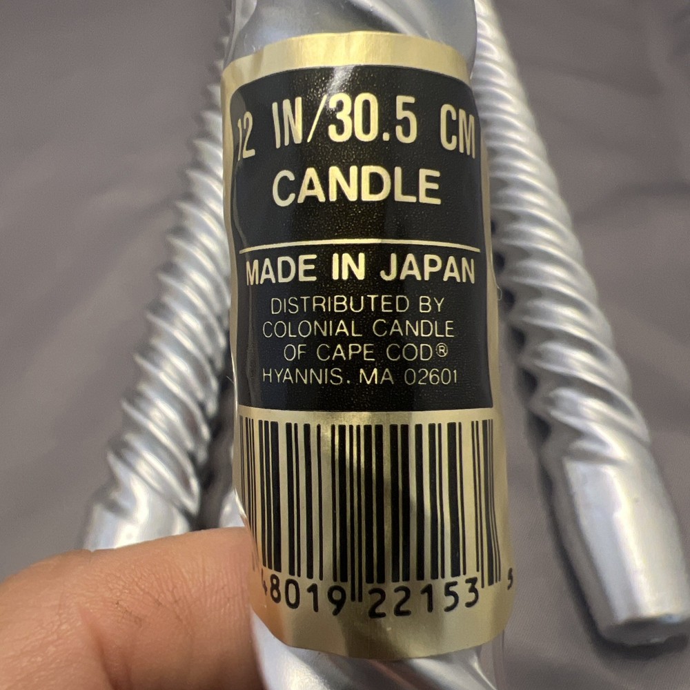 Features: Hand-Dipped Model: Colonial Candle Handipt Item Length: 12 in Brand: Colonial Candle Shape: Tapers Scent: No Theme: Holiday Number in Pack: 4 Size: 12 in Item Width: 12 in Type: Candles Country/Region of Manufacture: United States Material: Wax Color: Silver