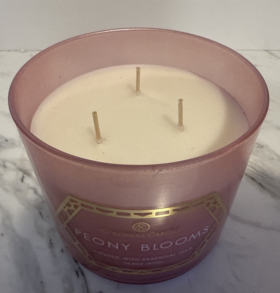 Colonial Candle PEONY BLOOMS 3 Wick NEW 14.5 Oz Infused With Essential Oils NEW Thank you for looking and supporting my small business!