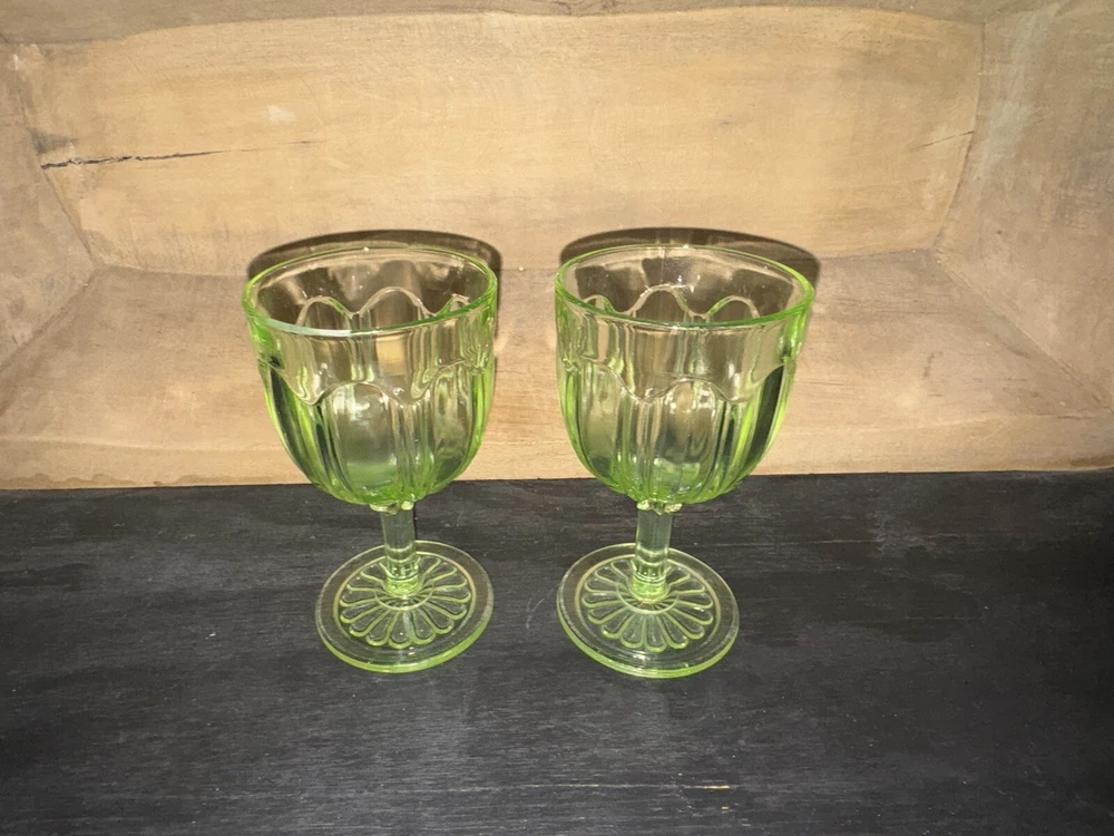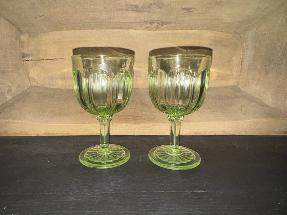 This set of two-piece Colonial Knife and Fork green uranium glass footed tumblers are a perfect addition to any glassware collection. Ideal for all occasions, these 5 oz tumblers are made by Anchor Hocking and have a vintage style. Crafted during the period of Depression Glass production in the 1930s, these tumblers are a fine example of the Colony product line. The glassware features a distinct pattern and is perfect for use as drinkware or barware. Add a touch of history to your glassware with these Depression-era tumblers. Overall condition is excellent vintage condition. Please examine images provided and ask questions. Shipped with USPS Priority Mail. Thanks for stopping in with us at Bringing_it_Home!