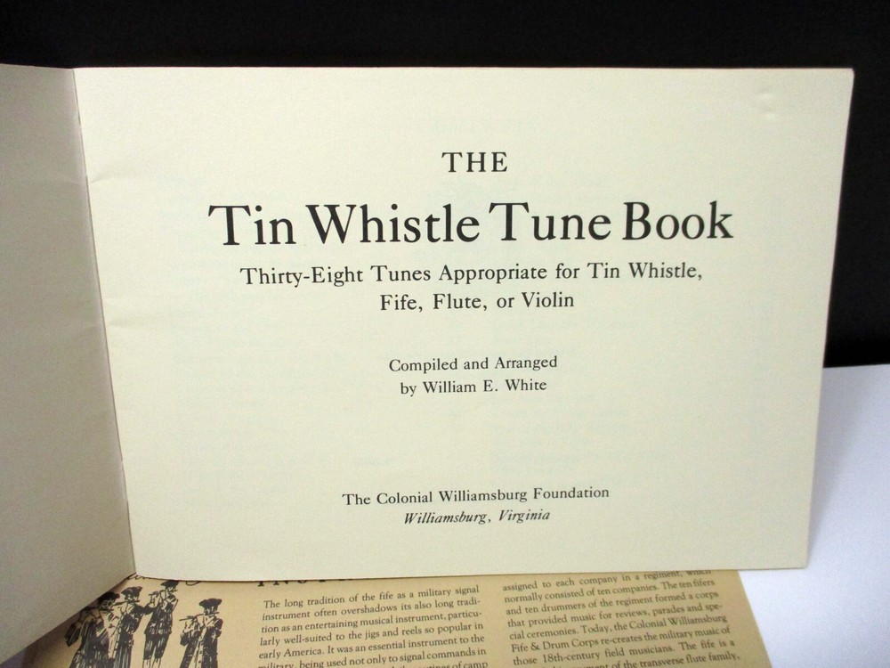 The Tin Whistle Tune Book Plus Fife Instructions Wiliamsburg Foundation Compiled and Arranged by William E. White Published by the Colonial Williamsburg Foundation 27 Pages Plus Small booklet titled Instructions for The Fife Condition: Very light wear Shipping Notes: We do offer reduced shipping costs when buying multiple items.