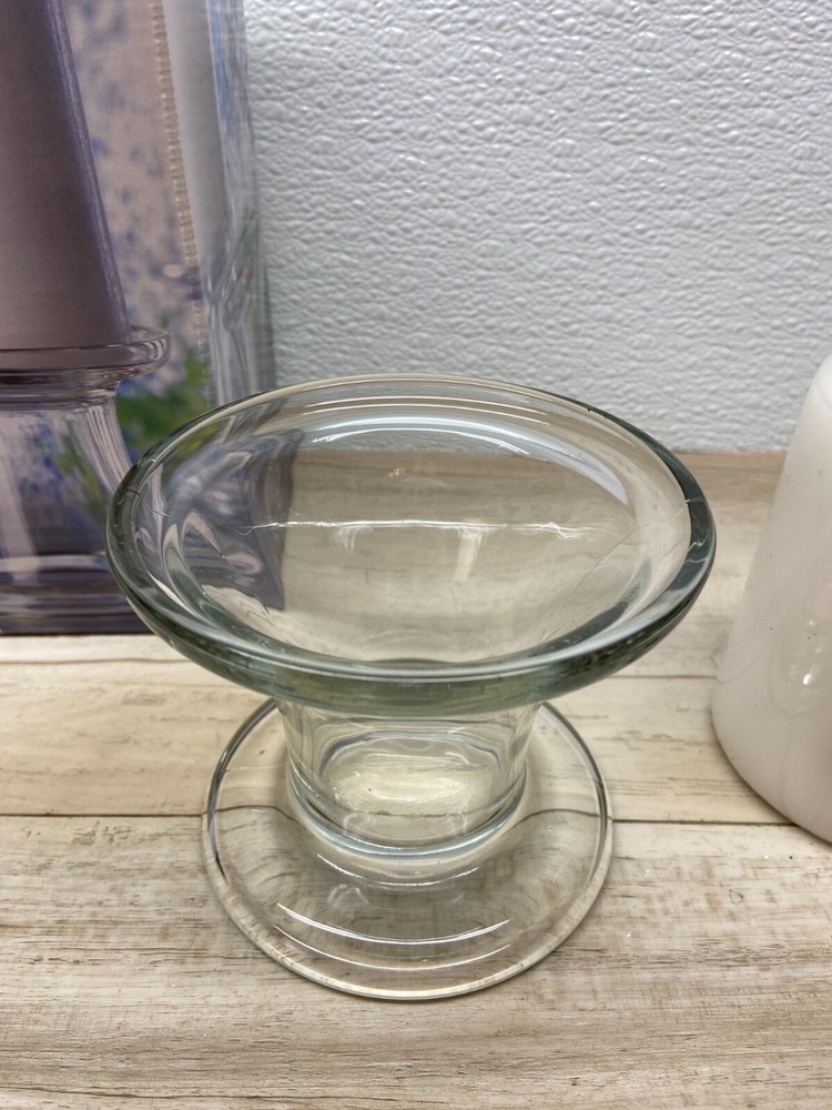 Indiana Glass Colony Ambiance Votive & Pillar Round Clear Glass Candleholder Set With Candle .1scented votive candle and 1 scented pillar candle.Made in USA WE OFFER COMBINED SHIPPING AND MULTI-ITEM PURCHASE DISCOUNTS.IF YOU HAVE ANY QUESTIONS, PLEASE LET US KNOW