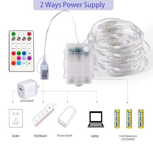 Return Policy Fast Delivery Trusted seller Color Changing Fairy Lights LED String Lights with Remote, 16.4FT 2 Pack Twinkle Lights USB Plug or Battery Powered, Outdoor Waterproof Christmas Decorations for Bedroom Wedding Party Indoor… Product Description 【Multicolor Fairy Lights】 16.4 feet 50 LED fairy lights battery operated can change into 10 different colors and 12 mode multicolor, you can choose the color to go with your party theme, such as Christmas, Halloween, Valentine, St Patrick's Day, July Fourth, etc. 【String Lights with Remote】The mini Christmas lights have 2 ways to change the color and mode, remote or bottom in battery box. Hanging lights in bedroom, room, curtain, classroom, patio, garden tree, fairy lights with remote easy to changing ON/OFF, brightness, timer. 【2 Ways Powered: Battery / USB 】 2 types of power supply are suitable for any scenario and location. No more worrying about power outlet or changing batteries frequently. The RGB lights battery box use 3 AA batteries to decorate your home and outside ( USB adapter and batteries are not included). It’s portable and can be easily set anyw for a wonderful ambiance. 【No Tangle Mess】 The upgraded copper wire lights is coated by pvc that make the strand safer, durable and easy to use, can be easily moved and organize without tangling. You can wrap the rope lights around trees, handrails, fences, tents, decorate your bedroom, living room, table, stair railing, plants, etc. 【IP65 Waterproof】 The Waterproof string lights is suitable for outdoor use, patio umbrella, courtyards, sheds, corridors and other places. LED bulb incorporating fogged technology and low voltage are brighter and do not overheat even after hours of use, safety to touch and making the light friendly to family with kids and pets. Shipping Returns Payment Shipping Shipping is FREE to all addresses other than APO/PO boxes in the lower 48 states. All our stock ships from US-based warehouses. Shipped via USPS or UPS (depending on location and package weight) Unless stated otherwise, all orders will ship within 24-72 hours of your payment being processed. Check our feedback to see the great reviews of FAST shipping we offer. Returns Seller does not accept returns Payment We currently accept payment via eBay managed payments only. Once payment is cleared, we will dispatch your shipment within 1-3 business days. Please refer to the "Shipping" tab for more information regarding shipping speed to your destination.