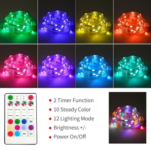 Color Changing Fairy Lights LED String Lights with Remote, Multi-colored-2pack