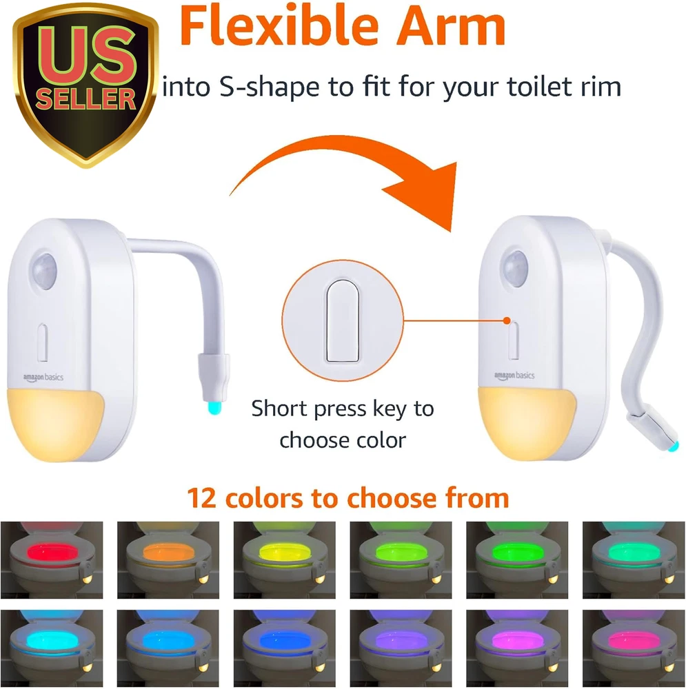 Store New Arrivals Add to Favorite View Feedback Contact Color Changing LED Toilet Bowl Motion Sensor Light, Battery Operated, 2 Pack, White Description Light Source Type LED Item model number 59397 Style Night Light Number of Items 2 Power Source Battery Powered Pattern Solid Control Method Touch Warranty Description 1-year limited. Batteries Included? No Lighting Method LED Lamp Type Night Light Number of Pieces 2 Room Type Bathroom Finish White Battery Cell Type Alkaline Product Dimensions 3.35 x 1.97 x 5.31 inches Material Plastic Controller Type Push Button Finish Type White Specific Uses For Product Night Light Included Components Mounting Hardware Item Package Quantity 2 Country of Origin China Water Resistance Level Not Water Resistant Batteries Required? Yes Item Weight 0.1 Pounds Connectivity Technology No Special Features Cordless, Motion Sensor Special Feature Cordless, Motion Sensor Part Number 59397 Shade Color Multicolor Mounting Type Wall Mount Color White Base Material Plastic Is Waterproof True Recommended Uses For Product Decoration Switch Type Push Button Size White, 2-pack An RGB LED adds a splash of color while the light on the base provides an amber glow; perfect for evening routines, potty training and ambience Automatically turns on when motion is detected within 15 feet and turns off 1 minute after movement stops Use the mode button to choose your favorite color or preset, and to operate the amber guide light Hook onto the bowl or mount the base to a wall; powered by 3 AAA batteries (not included) Product Dimensions: 1.97 x 5.3 x 3.35 inches (WxHxD) Upgrade the way you light your bathroom with the Amazon Basics Color-Changing LED Toilet Light! A low-profile RGB LED hooks under the toilet seat and fills the bowl with light, adding a splash of vibrant, stylish color. To change modes or find your favorite preset, use the push-button control on the base that rests outside of the bowl. The base also has a built-in night light that emits a soothing amber glow, perfect for guiding evening routines. Want to use the light in another location? Simply remove the arm and mount the base on the wall to use it as a motion-sensing night light! Designed for convenience, especially during late-night visits, the light will automatically turn on when motion is detected within 15 feet. It will also turn off 1 minute after you leave, or after motion is no longer detected. Wire free and hassle free, the toilet light is powered by 3 AAA batteries (not included). The Amazon Basics Color-Changing LED Toilet Light is a fantastic lighting solution for any bathroom; convenient, colorful and fun! ABOUT US We offer the best prices around on high quality products. Our E-store includes media such as books, movies, music and games while offering electronics, toys, sporting apparel, clothing, tools, general home, garden items and more. SHIPPING We are always working hard to ensure your package arrives as soon as possible. Please understand that some factors like weather, high postal traffic, and the performance of shipping companies are outside of our control. We offer free shipping to the lower 48 states and ship within 2 business days of payment, usually sooner. We do not accept P.O. Boxes. Please provide a physical address. For shipping outside of the continental USA, we only use eBay's Global Shipping Program.The item is shipped to KY and then sent to the rest of the world. International customers are responsible for all duties and taxes. Continue to check out in order to calculate costs for shipping the item to your country. Messages regarding eBay's Global Shipping Program MUST be directed at eBay EXCLUSIVELY. RETURNS We offer a 30-Day Return Policy on items which you are not completely satisfied with. You have the option for a full-refund or an exchange of the item. No returns are available on items shipped outside of the USA. PAYMENT We accept PayPal. CONTACT US This page content is yet to come Please ad us to your favorite seller and visit again later Thank You CUSTOMER SATISFACTION We try our very best to make sure every customer is completely satisfied. If there's a problem, message us! We're happy to help. WE ACCEPT Copyright © 2021 AutoDS. | All Rights Reserved