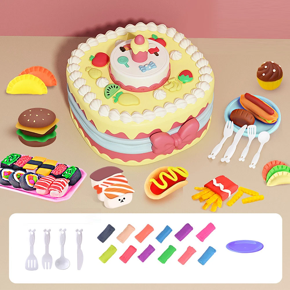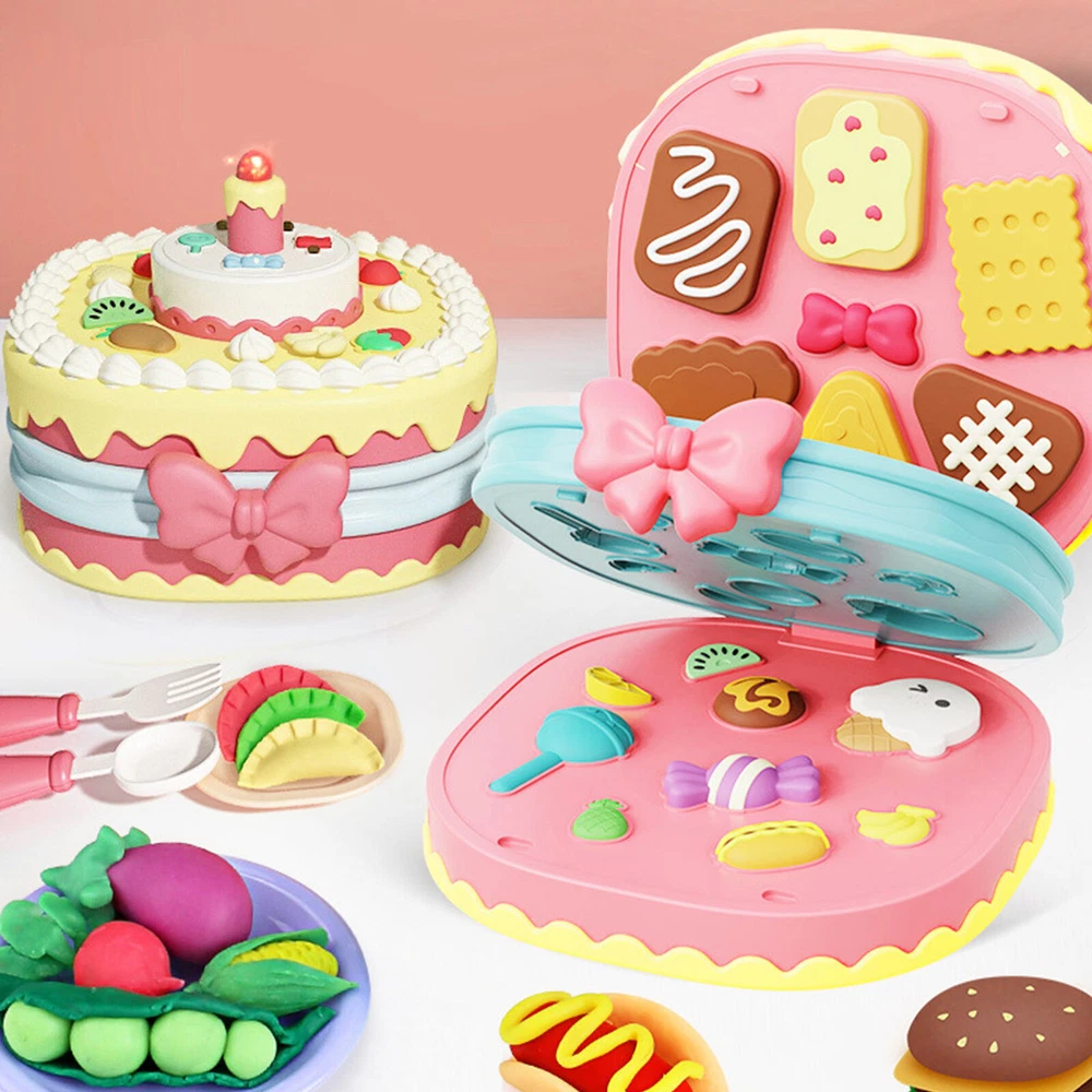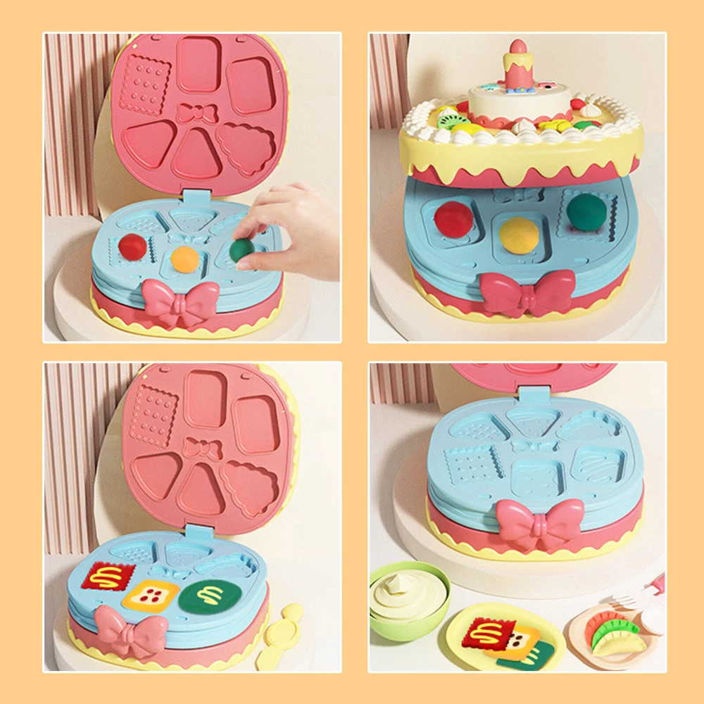 Feature: 1. Exquisite Mold Set: Contains multiple exquisite molds, allowing children to easily create various cake shapes. Exquisitely designed and perfect for girls, it is definitely a toy that makes girls happy. 2. Ultra Light Clay: This colored clay is ultra light clay, emitting a wheat fragrance, non toxic and harmless, and will not cause irritation to children's skin when playing, making it very safe. 3. Stimulating Creativity: Combined with sound and light music, it can stimulate children's interest in playing, cultivate their enthusiasm for independent play, and enable them to cultivate creativity and imagination through handcrafting. 4. Identify Colors and Exercise Observation Skills: Twelve types of clay colors allow children to recognize various colors while playing. At the same time, children exercise their observation skills and improve their aesthetic abilities during the process of making various foods. 5. Improve Hands on Ability: In addition to using a cake machine to make food, colored clay can also be molded into different shapes and styles through hands on ability. Specification: Item Type:Color Dough Kitchen Creations Tools Kit Material: Plastic Pattern: [Sound and Light Version] Cake Machine+12 Mud [Blowable] Package List: 1 x Color Dough Kitchen Creations Tools Kit 12 x Colored Clay 4 x Knife and Fork 1 x Plate