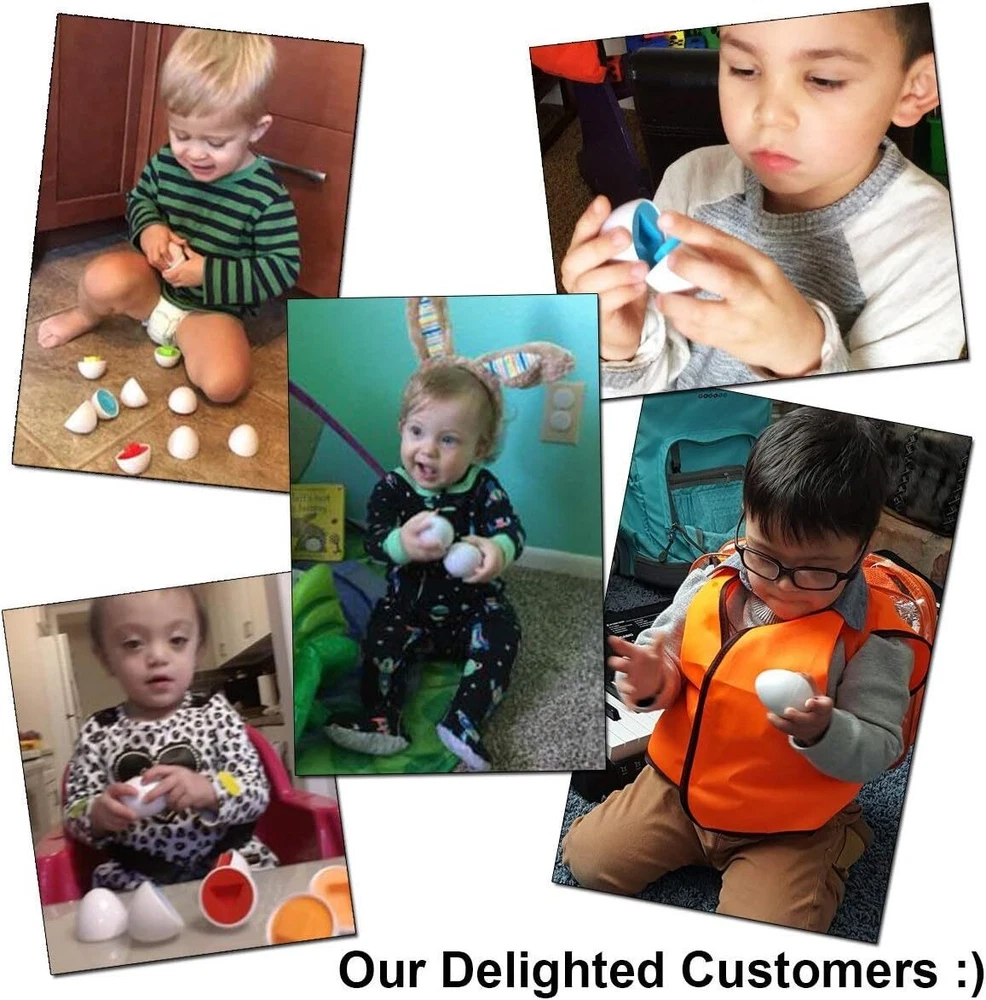 Toddler Toys - Color Matching Egg Set - Educational Color, Shapes and Sorting Recognition Skills - Puzzle for Kid Baby Boy Girl, Easter Basket Gift (6 Eggs) Funny Toddler Learning Toy: 6 charming eggs in a carton will help preschoolers learn to count, sort, and match! Exercise children's hand-eye coordination. Each plastic egg contains a different color and number, with corresponding pegs and holes Cultivate Smart Minds: These interactive eggs will improve hand dexterity, color recognition, and motor skills. Enrich the baby's knowledge. Great Easter egg toy game for boys and girls Adapt To Child Design: 2.2" x1.8" eggs are perfect for little fingers to grasp and maneuver. workmanship allows children to open it independently. Very suitable for children over 3 years old Friendly And Harmless Material: Made with top quality child-safe materials non-toxic tasteless, meticulous workmanship, each corner is smooth. Sturdy plastic case super convenient for quick 'n easy storage Customer Satisfaction: If you have any questions about our products, please let us know right away and we will solve the problem for you Product Description Great Easter Eggs The package size: 6.1 x 4.3 x 2.7 in. This set of interactive eggs is a perfect way to engage little minds and teach them color, shapes, numbers and matching skills and help them improve hand-eye coordination as well as fine motor skills. Child Friendly Design 2.2" x1.8" eggs are perfect for little fingers to grasp and maneuver. workmanship allows children to open it independently. Very suitable for children over 3 years old. Friendly and Safe Design Made with top quality child-safe materials non-toxic tasteless, meticulous workmanship, each corner is smooth. Sturdy plastic case super convenient for quick 'n easy storage. Matching Eggs Set is a wonderful color and shapesorting toy. With these educational shaped eggs, you cantrain sorting and matching skills of your children. Let your kidsrecognize the color and shape when they split the eggs. This setincludes 6 shaped puzzle eggs in 6 colors, 12 half pieces in total. Really agreat gift package! Notes: Eggs may be a little tight when playing for the first time,Please help ourchild open Screw these eggs. Details: Totalweight:0.44lb Egg weight:0.4lb Material: Non-toxic plastic Eggsize:(L/2.2 in, W/1.6 in) Overall size:(L/6.1 in, W/4.3 in,H/2.7 in) Item model number 135 Product Dimensions 7.87 x 59.06 x 1.97 inches Country of Origin China Item Weight 6.4 ounces Manufacturer recommended age 12 years and up Department Unisex Child Is Discontinued By Manufacturer No Shipping Fast shipping is very important for us. Our standard US shipping service is FREE. Your order will be shipped within 2-3 business days upon full payment received. Your order will be delivered within 2-3 business days after the handling time. We only ship to the confirmed PayPal address. We reserve the right to cancel any order for any reason at any time. We are not responsible for undeliverable addresses. Returns and payment We offer a 30 days return policy from checkout winning date. We allow only PayPal as payment method FeedBack Your feedback very important to us, after you get your package and you are satisfied with our service please leave us positive feedback If you have any problem with your order / any questions please before leave any type of feedback For any questions, using eBay contact system Please visit our eBay store to check out other items for sale! Thank you for shopping at our store.