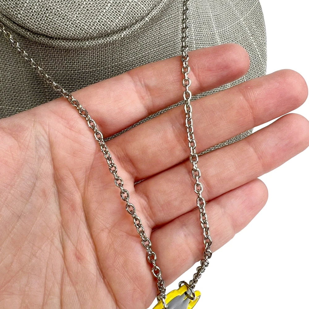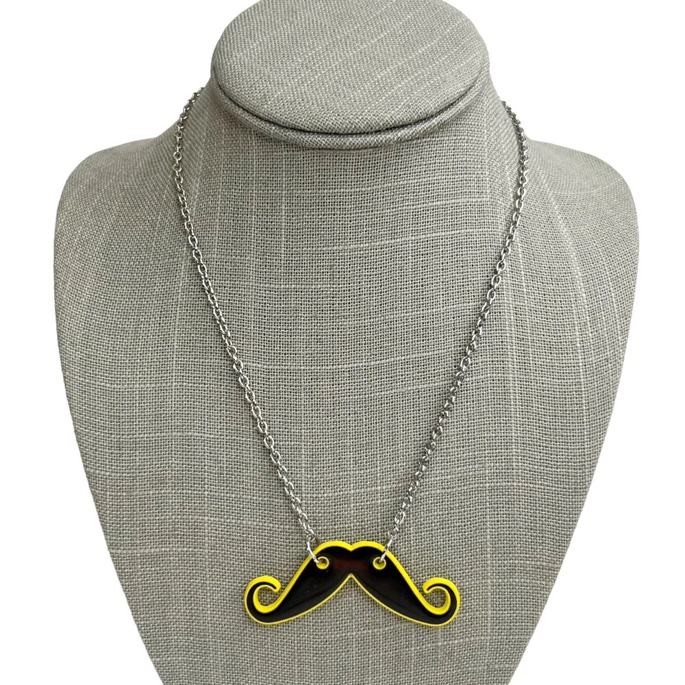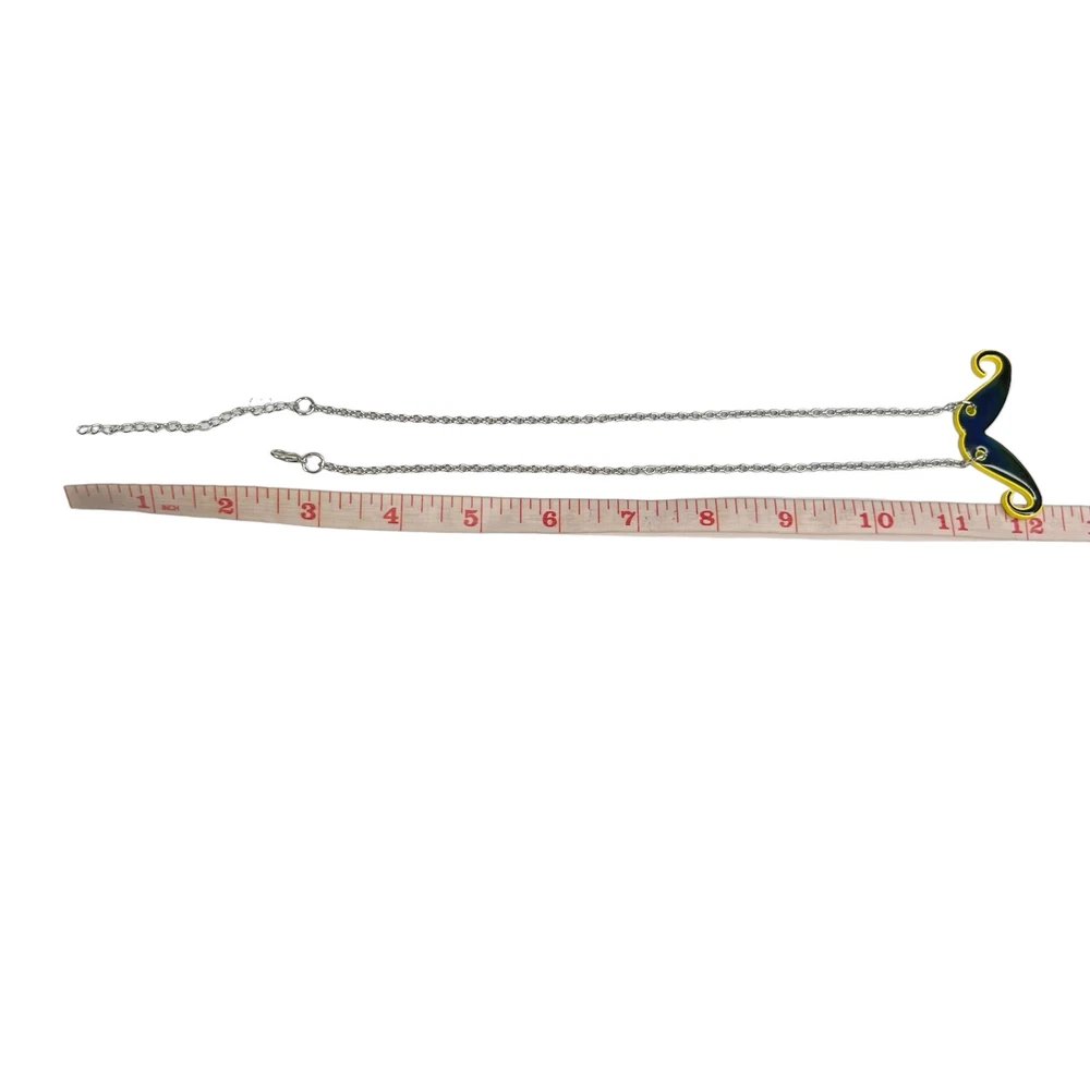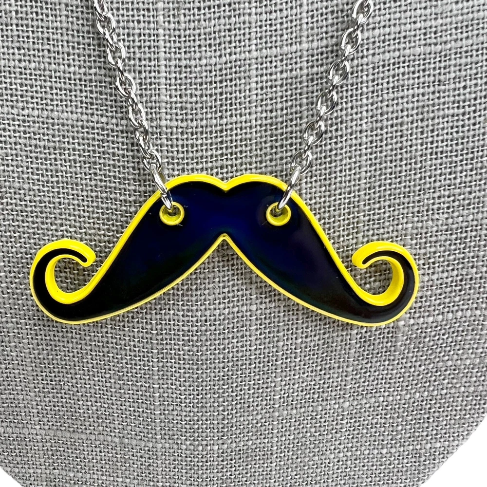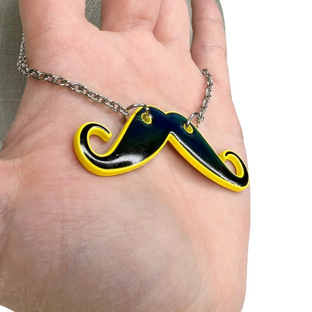 Color Mood Changing Handlebar Curly Mustache Chain Necklace. In good preowned condition. Features a handlebar mustache that is black & yellow but changes to different colors depending on your mood. Silver tone chain with a lobster claw closure and extender. Unbranded.