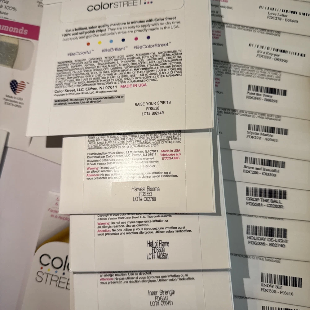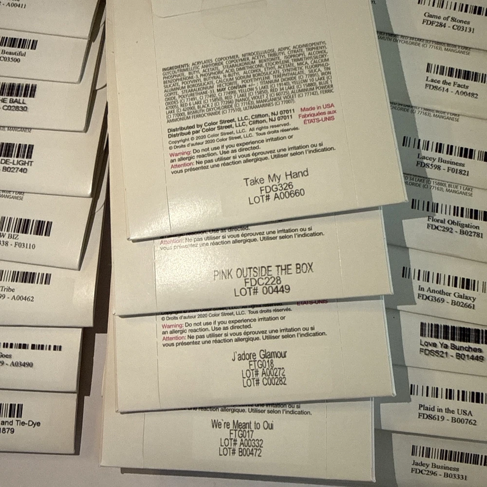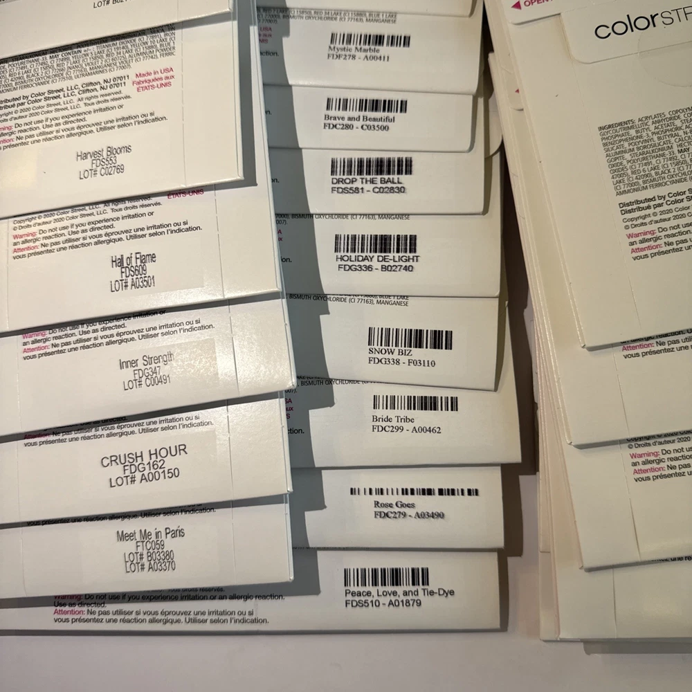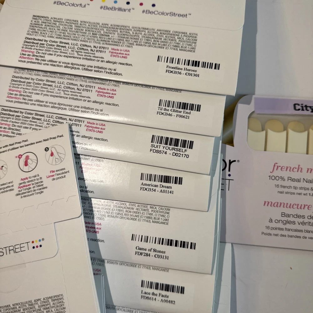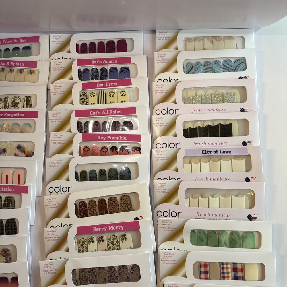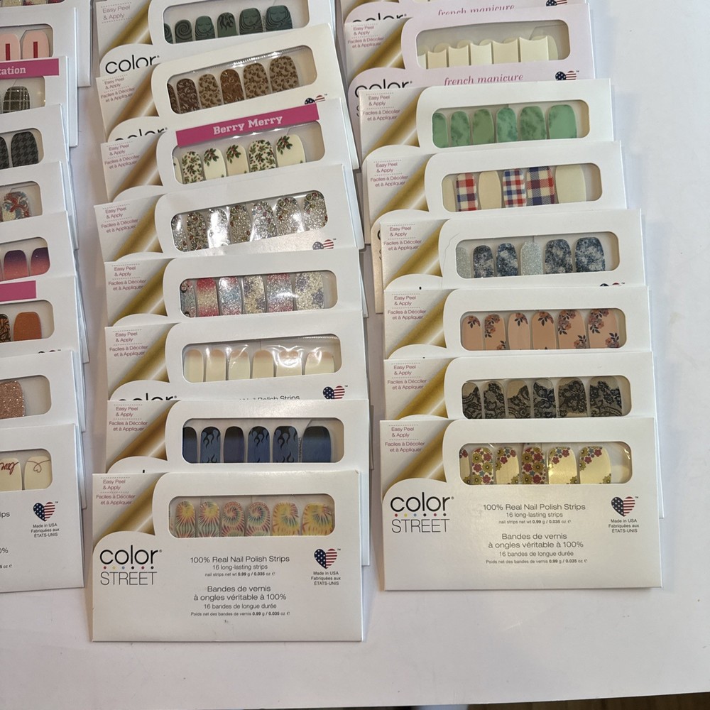 The is a lot of Color Street nail strips, consisting of 50 new packages in french manicures and designs! These nail polish strips are from the retired designs, offering a variety of colors and styles to choose from. As a popular brand in the nail care industry, Color Street provides a convenient and easy way to achieve professional-looking nails at home. These nail strips are a popular choice among beauty enthusiasts looking to add a touch of color and sparkle to their manicures and pedicures. Comes from a smoke-free home. Labeled with the names for convenience, unlabeled have names in pictures. These are retired Color Street sets and have been stored for some time. Due to age, some sets may be partially dried. Priced accordingly and sold as-is. Lot - D for inventory purposes