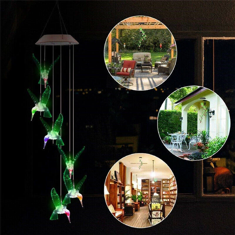 Bullet Point 【ENERGY SAVING & AUTOMATIC】 Solar-powered design, excellent automatic sensor, battery panel can quickly absorb energy, and can be used for 6-8 hours when fully charged. LED lights do not fade or deform and can last up to 100,000 hours at night. 【MULTI COLOR CHANGING LIGHT 】Set the switch to "ON" mode, and it will automatically charge during the day (placed in a sunny place). At dusk, the light will automatically turn on. From one color to another, 7 colors can be easily and gently changed. 【EASY TO HANG & MOVE】 High-quality and durable ABS material, unique waterproof design, with an "S" -shaped hanging hook, can be easily connected to the roof protrusions or trees around the garden or terrace. (Tips: Do not immerse the product in water for a long time) 【GREAT FOR HOME DECOR】 This wind chime is a great companion for home decoration, courtyard decoration and stained glass window decoration. It is a great gift for holidays, anniversaries, and Mother's Day. Can be used indoors and outdoors. 【100% QUALITY GUARANTEE 】If you want to decorate more beautiful and colorful, you can buy several products at once to decorate. If you are not satisfied with the wind chimes, please contact us for a full refund within 30 days. We provide the highest quality products and the best customer service. SPECIFICATIONS: Solar wind chime Brand iMeshbean Condition 100% Brand New & High Quality Style LED Material Plastic Power Solar/Rechargeable NiMH battery Charging time 6-8 hour in direct sunlight Color 7 Colors changing in random Switch ON/OFF (Under the panel) Package included 1 x Solar wind chime 1 x Rechargeable NiMH battery 1 x Retail package Kindly Note: 1.Hang the solar lights outdoor to enjoy direct sunlight. 2.Make sure the switch is set to "ON" position.(turn on to begin charge) 3.Covering the solar panels imitate nightfall to sure if the solar lights can turn on automatically. 4.If solar lights does not light up after it has been used for around 1-3 months,Replace the rechargeable batteries as they may be weak or worn out. Battery 1 pc "AA" 1.2v, Ni-CD, Rechargeable- Same equivalent type as recommended must be used.