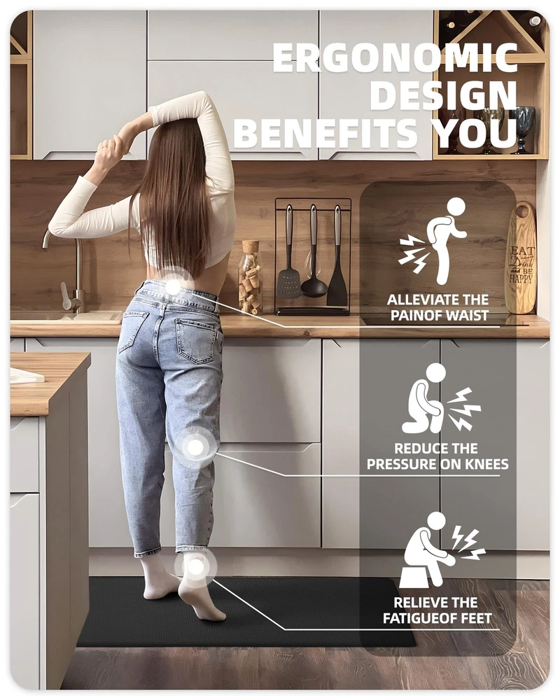 Color&Geometry Kitchen Rugs, Kitchen Runner Rug Kitchen Floor Mat, Cushioned Anti-Fatigue Kitchen Mat, Non Slip Waterproof Comfort Standing Padded, Memory Foam Kitchen mat, 17"x95", Black UNIVERSAL AND HIGH-QUALITY: These kitchen rugs are 17"x29"/17"x59"/17"x79"/17"x95"/24"x87"/24"x94" in size and come in five matching colors, and the thickness is 1/30 inch. These two different sizes make it suitable for most kitchen areas, and you can use either according to your needs. In addition, our kitchen rugs made from high grade materials, which is environmental friendly, non-toxic and not easily worn out by frequent use. CUSHIONED SUPPORT: The design of this memory foam kitchen comfort mat is ergonomic and endure long periods of pressure, It helps reduce the stress you put on your joints and stops overworking your muscles. Anti-fatigue mats are good options for anyone who spends a significant amount of time standing in front of their kitchen sink or counter. If your mother works in the kitchen for a long time, our anti fatigue mats for kitchen floor will be the most perfect mothers day gifts. WATER RESISTANT AND NON-SLIP: Ultra anti-slip backing and Beveled edge with anti-curl prevents tripping, provide safe for your family. Nonslip PVC Bottom is manufactured so that they do not move around like other mats while a slight texture on the top makes them slip resistant. Make sure the floor is clean and dry before use. EASY TO CLEAN: The surface of this kitchen mat set is oil-proof and waterproof, simply wipe clean with a damp cloth or sponge, use any common household cleaner or sweep clean of dirt and dust, save your time and energy. WHAT YOU GET: A beautifully packaged, high-quality kitchen mat and 100% satisfaction. Attention: If the mat you receive has creases due to transportation, please lay it flat for 1~2 days to remove the creases on the carpet before using it for the first time, or wash and dry the kitchen mat. For any other questions, please contact us, we will provide you with the best solution ASAP. Shipping We offer FREE shipping on all orders! We use a selection of shipping services such as UPS, FedEx, USPS etc. We only ship to the lower 48 states, no APO/FPO addresses or PO Boxes allowed. Local pickups and combined shipping options are not provided at this time. Return You can return a product for up to 30 days from the date you purchased it. Any product you return must be in the same condition you received it and in the original packaging. Please keep the receipt. Payment We accept payment by any of the following methods: PayPal Please pay as soon as possible after winning an auction, as that will allow us to post your item to you sooner! Feedback Customer satisfaction is very important to us. If you have any problem with your order, please contact us and we will do our best to make you satisfied. Contact Us If you have any queries, please contact us via ebay. We usually respond within 24 hours on weekdays. Please visit our eBay store to check out other items for sale! Thank you for shopping at our store.