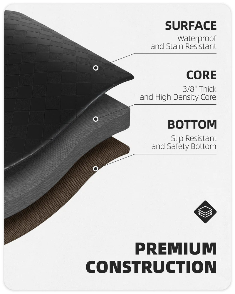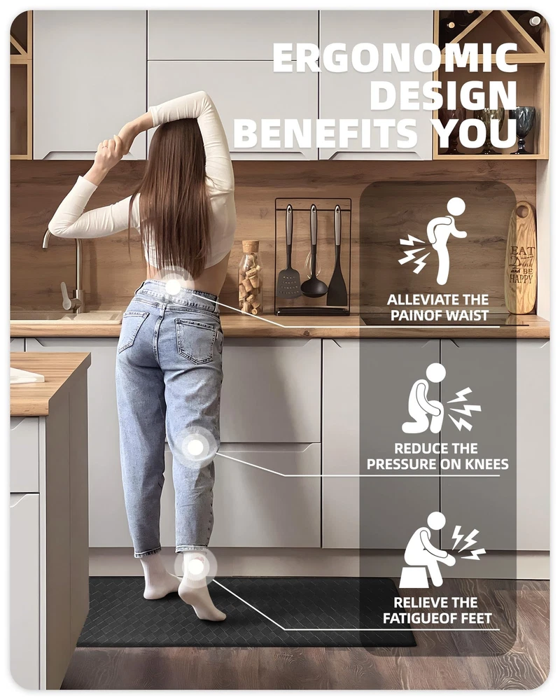 Excellent Cushioning: The cushioned design of these kitchen floor mat provides effective anti-fatigue support that relieves leg muscles while standing. If you often experience foot, leg, and back pain from extended periods of time in the kitchen, these anti-fatigue kitchen mats are perfect for you. They also make a great gift for family or friends who may be facing similar discomfort. Secure Grip: The Color&Geometry kitchen rugs feature a non-slip design on the back to ensure the safety of you and your family. You can confidently use these mats on various surfaces, including marble, wood, ceramic, laminate, and concrete. However, it is important to ensure that the surface is dry and flat before placing the mats. Easy to Clean: Made of premium PVC material, these kitchen runner rugs are waterproof and resistant to oil stains. Cleaning them is a breeze—simply wipe away any spilled water or oil with a broom or mop. Additionally, these kitchen sink rug can provide protection for your cherished tableware, guarding against accidental breakage. Kitchen Rug Set: Color&Geometry kitchen mat set is available in stylish colors, and the size is longer than most kitchen mat sets. These kitchen rug runner provide maximum coverage for your countertop workspace, stove, sink, dishwasher, and laundry area. It’s worth mentioning that the kitchen rugs sets of 2 are flexible, allowing you to place them wherever you find convenient. Words for You: To minimize any damage during transportation, our kitchen rug set are rolled up and packed. If you notice any unevenness when first laying the mat flat, don’t worry. Simply allow it to settle and flatten out naturally over a few days. Start enjoying a more comfortable life by adding this mat to your kitchen! If you encounter any issues, please don’t hesitate to contact us.