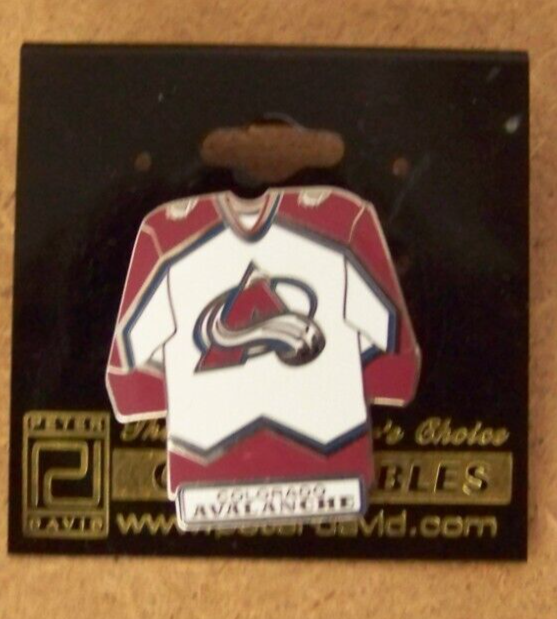 Colorado Avalanche jersey lapel pin white NHL This NHL licensed post and butterfly clip backed pin measures about 1.2" wide. Although new and unused, these never had any protective packaging, unlike the baggies used nowadays. The pin has a few small, and very light scratches/nicks. Don’t forget to click on my "Stores" link, next to my eBay name, to see other items I currently have listed for sale, or you can copy and paste this address into your browser: stores.ebay.com/highcountrycollectibles SHIPPING INFORMATION Shipping to U.S. addresses is FREE! HIGH COUNTRY COLLECTIBLES Since 1989 – A LEADER IN THE DENVER SPORTS MEMORABILIA MARKET. Check out my other auctions and listings, and keep an eye out for the different, unusual, and EXCLUSIVE items available nowhere else but from High Country Collectibles.