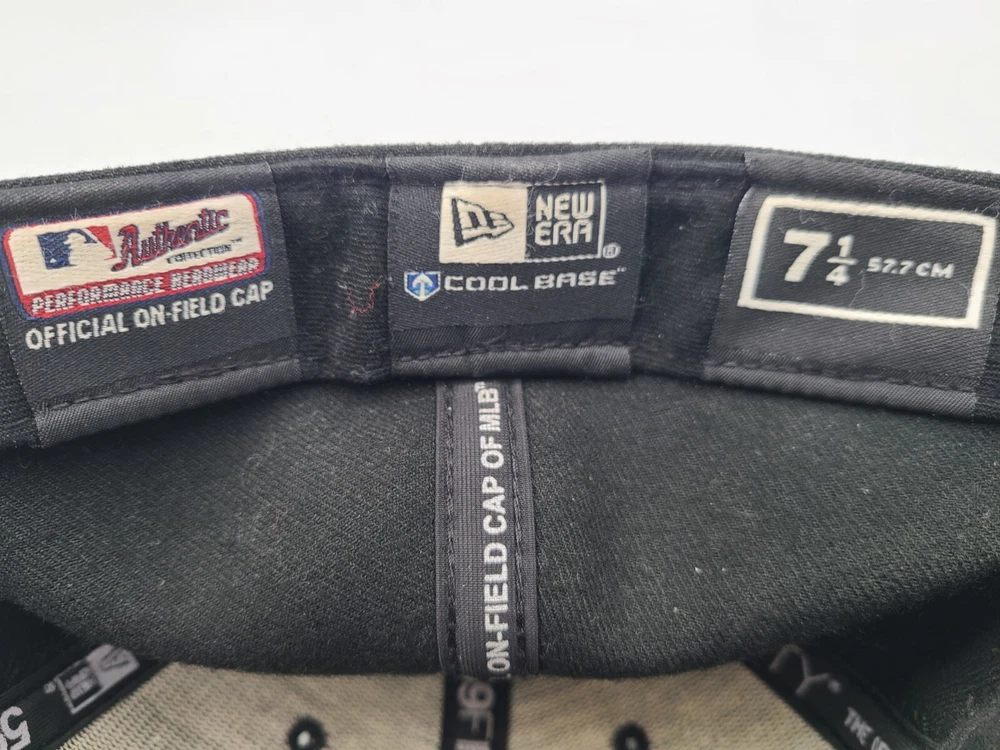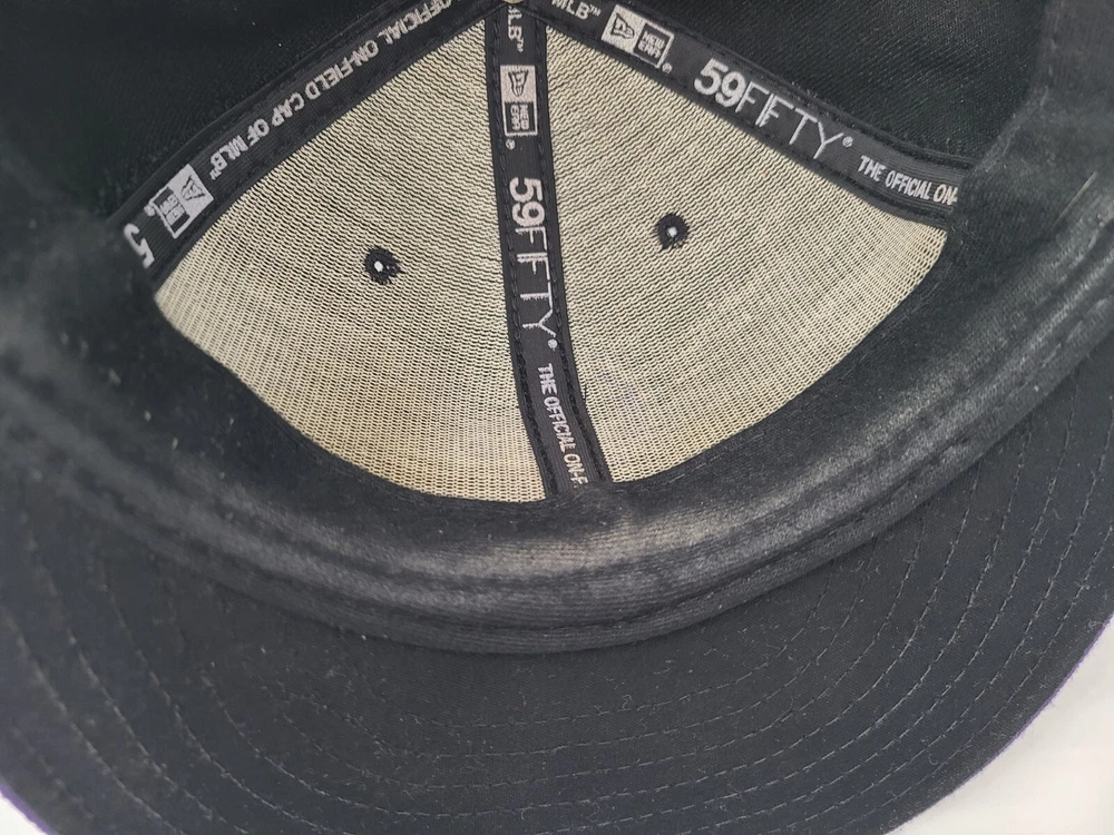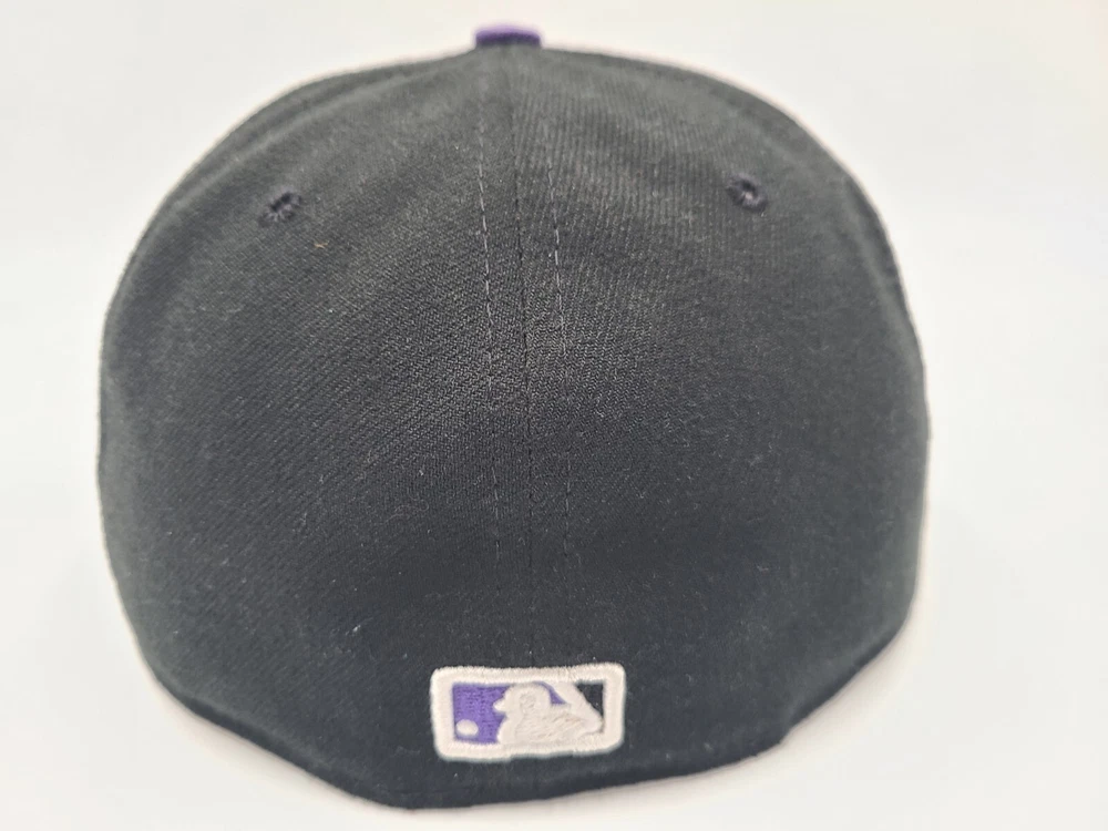It seems like there will be a mark left over is the sticker is removed. Also has some stains on the brim and wear underneath the brim as seen in photos. Colorado Rockies New Era 59Fifty Fitted 7 1/4 Hat Cap MLB Baseball Black Purple. EACH ADDITIONAL HAT PURCHASED IS ONLY $1 ADDED SHIPPING!
