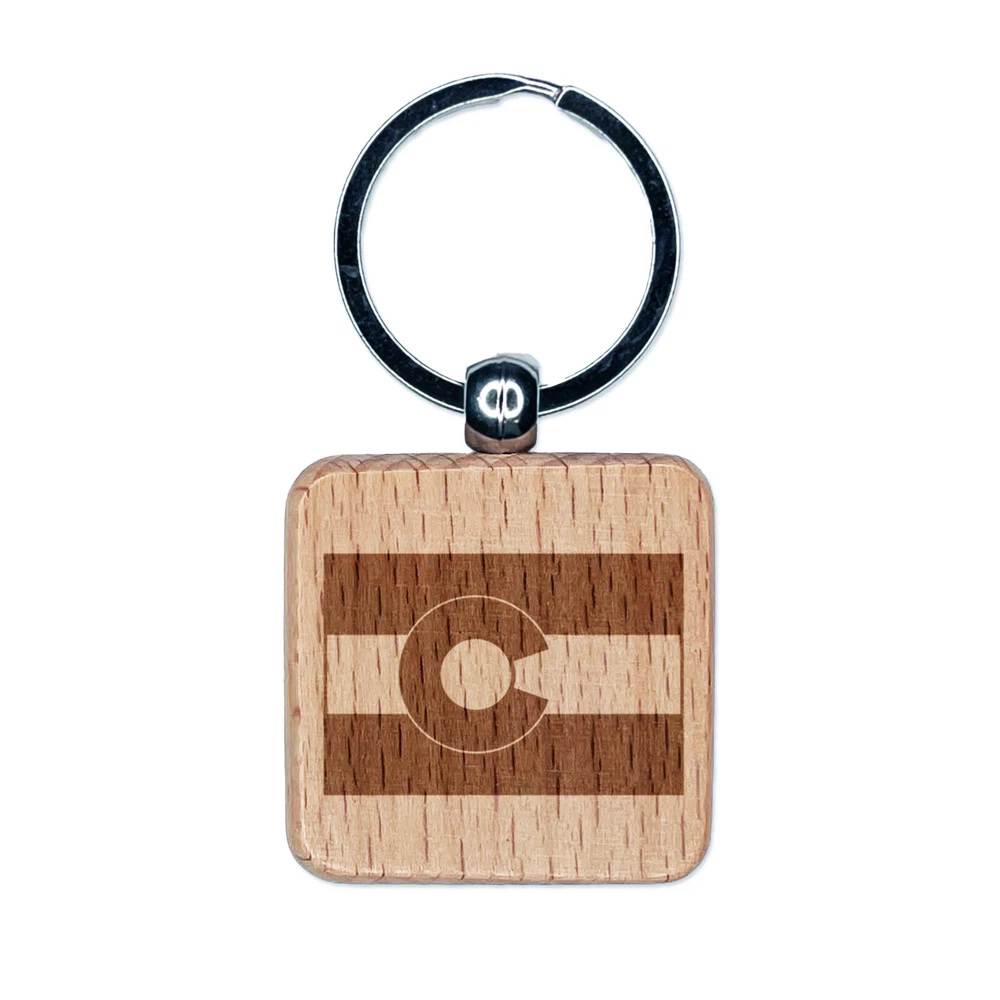 Colorado State Flag Engraved Wood Square Keychain Tag Charm