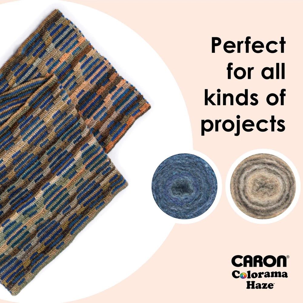 Step into a world of dreamy textures and exquisite colors with Colorama Haze, the latest in the Colorama family. Colorama Haze offers a soft felty texture, making it perfect for garments such as sweaters, cardigans and accessories. The colors softly overlap, offering a belnd throughout the yarn that is unique to ever ball - meaning that every project is completely individual and looks fashionably handmade. Perfect for the crafter who loves bright projects or for who likes a more understated pallet - Colorama can turn any knitting dreams a reality. Content: 48% Polyester 42% Acrylic 9% Nylon 1% Spandex. This yarn is great for knitting, crocheting, amigurumi and craft projects. Easy to care for: machine wash and dry. Ball Size: 227g / 8oz or 593 meters / 649 Yards Gauge: #4 Worsted (Medium) , Knitting Gauge: 4" x 4" (10cm x 10cm) 17sts x 24r with 5 mm/US 8 Knitting Needle , Crochet Gauge: 4" x 4" (10cm x 10cm) 14sc x 16r with 5 mm/US H-8 Crochet Hook Step into a world of dreamy textures and exquisite colors with Colorama Haze, the latest in the Colorama family. Colorama Haze offers a soft felty texture, making it perfect for garments such as sweaters, cardigans and accessories. The colors softly overlap, offering a belnd throughout the yarn that is unique to ever ball - meaning that every project is completely individual and looks fashionably handmade. yarn takes color inspiration from everywhere, making it easy for you to find the perfect color for your project – or inspire you to try something new! Check out the many kinds of yarns and discover a versatile yarn for knit and crochet patterns like sweaters, blankets, pillows, accessories, and more!
