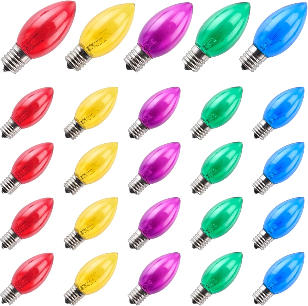 Colorful 25 Pack C9 Christmas Bulbs Replacement - Multicolor Incandescent Bulbs,