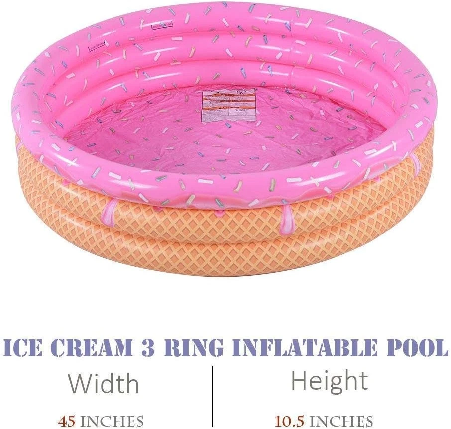 Inflatable Kiddie Pool, Watermelon & Ice Cream (Donut) 3 Ring Swimming Pool, 45 Inch Round, Red, Baby & Kid, Splash Pool, Easy Inflate, Includes Repair Patch Kit Special Pattern: Different from other kiddie pools sold on Amazon, our inflatable kiddie pool has special watermelon and ice cream(Donut) pattern. It is eye-catching in your backyard and on the beach. Water Fun and Cool Summer: The inflatable pool is perfect for your kid who loves to play in the water. Let the kid enjoy water fun and cool off in the coming summer with this blow up pool. Multiple Uses: The inflatable swimming pool for kids and toddlers can be used as a ball pit or a sandbox for kids. You can also use it as a pet house for your dog. It can be used for outdoor and indoor. The maximum water level is indicated inside the pool and adding too much water will overflow. Easy to Inflate with 3 Separate Valves: The baby pool is easy to inflate with 3 separate valves . You can blow it up in several minutes with pump and even with your mouth! Buy With Confidence: A first-aid repair patch is included for a hole or a leak caused by accident puncture or tear. It is easy to use and keeps the fun going. Please feel comfortable to contact us and let us know if you have any further questions about this inflatable kid pool. Product Description Our special watermelon pool / hamburger pool / ice cream pool is a must-have for your kid and baby in the coming summer. They will love to play in the pool and have plenty of water fun. Color May Vary 100% physical photography. However, many factors might affect the color of the picture. Please in kind prevail. Package Included: 2 x Kiddie Pool /Inflatable Pool/Baby Pool 2 x polybag 2 x repair patch 2 x Color Box Enjoy Water Fun and Cool Summer The inflatable kiddie pool is perfect for your kid who loves to play in the water. Let the kid enjoy water fun and cool off in the coming summer with this blow up pool. Let our kids have summer fun with this inflatable pool! Features Special Pattern Different from other kiddie pools sold on Amazon, our inflatable kiddie pool has special watermelon ice cream(dount) hamburger pattern. It is eye-catching in your backyard and on the beach. Suitable Size The width is 45 inches and height 10.5 inches of watermelon ice cream(dount) hamburger 3 ring inflatable pool. Multiple Uses ( baby pool, kiddie pool, kids pool, blow up pool, inflatable pool, wading pool, toddler pool, ball pit pool...) Easy to Inflate with 3 Separate Valves The kiddie pool is easy to inflate with 3 separate valves . You can blow it up in several minutes with pump and even with your mouth! Great for Gift The colorful box for the baby pool is great for gift. Three Types of Inflatable Baby Pool Watermelon Pool Kiddie Pool, Watermelon Inflatable Pool, Water Pool in Summer, Pit Ball Pool of 45 Inches Hamburger Pool Kiddie Pool, Hamburger Inflatable Pool, Water Pool in Summer, Pit Ball Pool of 45 Inches Ice Cream Pool Kiddie Pool, Ice Cream Inflatable Pool, Water Pool in Summer, Pit Ball Pool of 45 Inches Notice about Baby Pool 1.No Diving: You can break your neck and be paralyzed. 2.Prevent Drowning: Closely watch children who are in or near this pool.Children under 5 are at highest risk for drowning. Empty pool or prevent access when not in use. 3.This is not a life-saving device. Do not use as a float. 4.Do not use the high-pressure pump to inflate. Do not over inflate. 5.Keep away from heat, prolonged sunlight exposure, extreme cold, rough surfaces, cigarettes and all sharp objects. 6.Not suitable for children under the age of 36 months due to small parts, choking hazards. Patch Using ----Step1: Clean repair area thoroughly. ----Step2: Press patch firmly over puncture. ----Step3: Do not inflate for 30 minutes. Style Watermelon and Ice Cream(Donut) Pool Assembly Required Yes Special Feature Inflatable Material Plastic Shape Round Age Range (Description) Kid Target Audience Unisex-Kids Product Dimensions 45"L x 45"W x 45"H Included Components 2× Repair Patch Kit, 2× Poly Bag 45.0 "h x 45.0 "h x 45.0 "h. Shipping from the USA All of our products are shipped from the USA, ensuring quick delivery to your destination. Payment We offer the following payment methods: PayPal, credit card, bank transfer, and eBay's secure payment system. Free Shipping & Free Returns Shipping within the USA is FREE. Additionally, any return is absolutely free for you. Risk-Free Purchase You have the option to return an item within 30 days without any justification. We cover the return shipping costs! Fast Shipping We ship immediately upon receipt of payment. Generally, the package is delivered within 2-3 days in the USA. If it takes longer, we will contact you. Quality and Costs Made in Europe, USA, China No customs fees or additional charges Total satisfaction guarantee Invoice with declared VAT available upon request in .pdf format Feedback Your feedback is very important to us. After you pay for your purchase, you will automatically receive positive feedback from us.