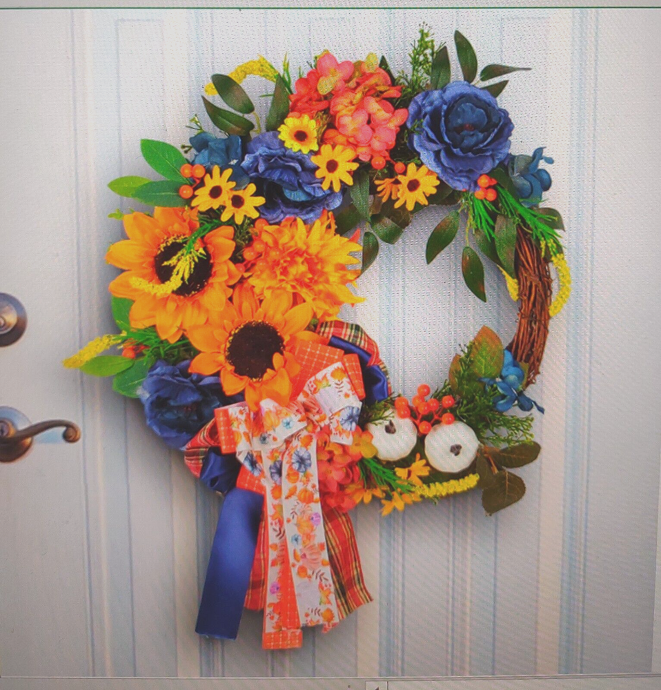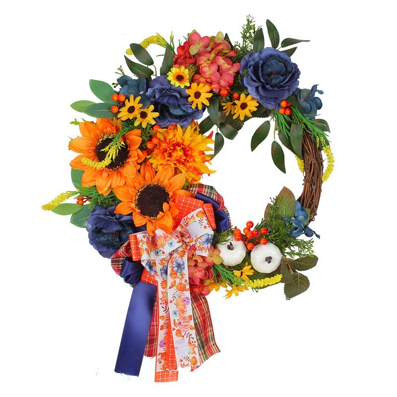 Artificial Autumn Wreath for Front Door or Porch, Multicolor Pumpkin