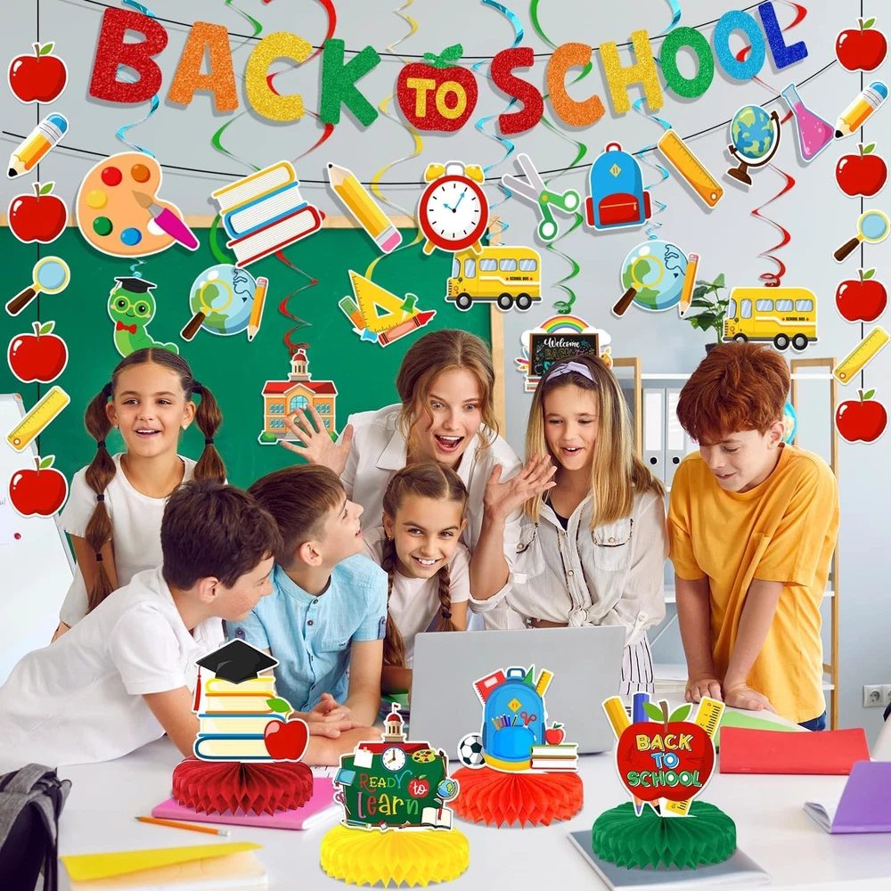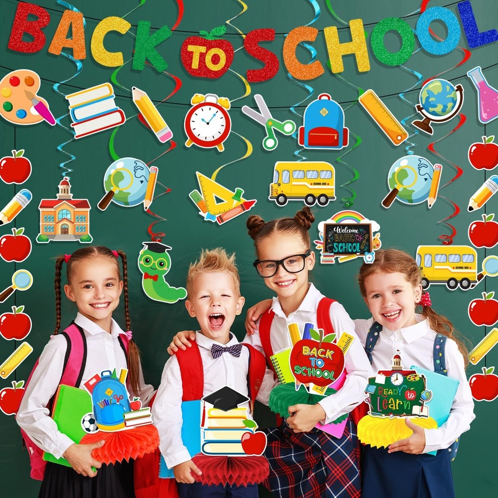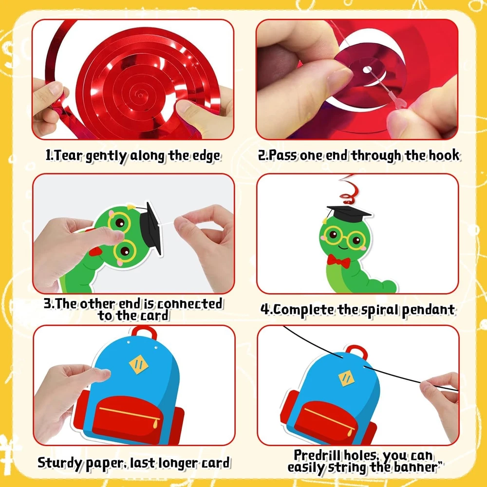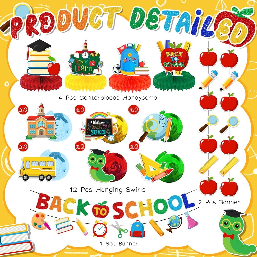 Free eBay listing template designed by dewiso.com Back to School Decorations Back to School Hanging Banners Swirls and Honeycomb Centerpiece Welcome Back Decor for First Day of School Decorations School Themed Party FREE AND FAST SHIPPING! About this item What’s in the package: you will receive one piece of colorful back to school banner and school banner, 12 pieces of hanging cutout cards, 4 honeycomb centerpiece and hanging swirls in total;the sufficient quantity and delicate design could satisfy your most decorative needs High quality material: the back to school banner is made of premium cardboard with colorful colors, and the double printed hanging cards are sturdy, thick and not easy to break; and the quality material make sure that our school theme party decorations could serve you for a long time Delicate design: these banners and swirls feature bright colors, different patterns of apples, pens, buses, books, schoolbags and more, these vivid patterns could add more interesting feeling and leave and unforgettable memory to your decorations Easy to assemble: our welcome back decorations are very convenient to use, you just need to spend few minutes to assemble them; and these simple installation steps could save your a lot of time that you can have more time to accompany your family After sale service: We appreciate your trust and want to make sure that everything works for you. If there is any problem with these classroom decorations, please contact our customer service, we will treat it sincerely Product We offer a 30-Day Return Policy on items which you are not completely satisfied with. You have the option for a full-refund or an exchange of the item. No returns are available on items shipped outside of the US . Shipping We offer Free Shipping to the US and ship within 2 business days of payment, usually sooner. We use UPS express shipping. That's why your products are usually delivered within 3 days . Contact We try our very best to make sure every customer is completely satisfied. If there's a problem , message us! We're happy to help. 24/7 live chat available.