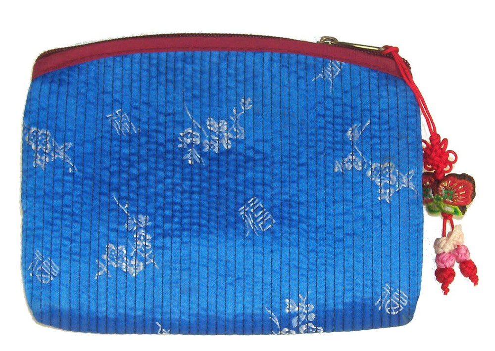 Colorful Beaded Wallet with Dual Zip Compartments 5x4 in Blue Pink Yellow