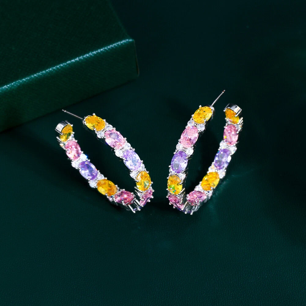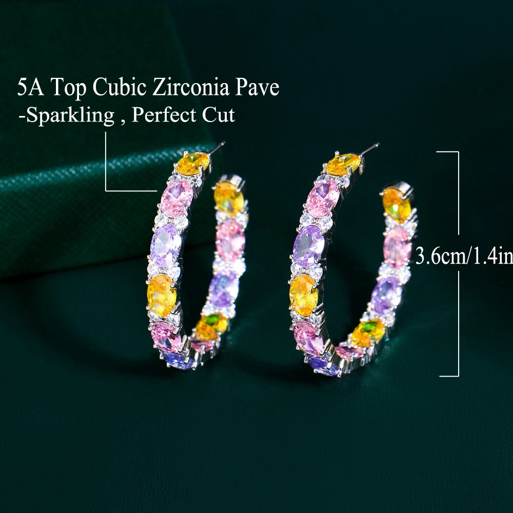 Cubic Zirconia Colorful Oval Tennis Round Circle Hoop Earrings for Women Party Specifications: Condition: New Material: Cubic Zirconia Color : Multicolor Size: 3.6 cm/ 1.4 inch Metal Color : Silver Plated Features: 1. CZ Stone Material - Top Level Cubic Zirconia. Excellent Cut Simulated Diamond. Enjoy the dazzling sparkle from cubic zirconia Hoop earrings. 2. These Fashion Large Hoop Earrings are Suitable for Almost all of Sensitive Ears. These are the top Cubic Zircon Round Earrings for Daily Wear. 3. Suitable for Various Occasions: Ideal for Wedding, Prom, Pageant, Parties, Homecoming, Black Tie Formal Affairs, Holidays , Birthday , Christmas , Valentine's Day , Anniversary and Special Occasions. 4. A Perfect Jewelry Gift for Women , Girls , Mother , Wife , Lover , Fiancee , Friends , Bride , Bridesmaid . Package Includes: 1 Pair of Hoop Earrings Payment Delivery details Terms of sales & Feedbacks About us & Contact us Our commitment Payment 1. We only ship item to your Ebay verified address . Please Make sure all address are the same 2.Please leave note in ebay when making the payment if you have any special request (colors/size). Delivery details We only send items to the registered eBay address.Items will be shipped within 2 business days from the date payment is received (not include public holiday and weekend) . As per eBay regulations, import duties, taxes, and customs charges are the buyer's responsibility. Please check with your country's customs office to determine what these additional costs may be prior to bidding or buying. Terms of sales & Feedbacks After-Sale Please contact us to request a return/replace/refund authorization .It will be best if you use ebay message to contact me. 1, Return and replacement request is available only the requests within 30 days after parcel received. 2, Returning the item as the same condition as received. Situation and solution Defectives ---Please contact us and provide a photo of the defective part. After situation confirmed,we will offer you refund/return/replacement according to the situation Not as Described ---Please contact us and provide a photo of the wrong part. After situation confirmed,we will offer you refund/return/replacement according to the situation Not Received ---Please undersatnding shipping on the way was out of our control ,because of the busy shipping season,holidays,bad weather or force majeure etc. It may be delay for days. But if it took too much time and not deliveried, Please message me, I will offer you solution for it. Feedbacks 1. If you are satisfied with our service, please leave us a + Good feedback and rate the details of the transaction (DSR) with a. . When you rate the shipping time part please take international transit into consideration.] Your recognition will make us more confident to develop business and serve you better. 2. Please contact us first if you have any problem with the items,we will solve it in time ! 3. Please do not leave Neutral or Negative Feedback before you contact us, Thanks For Your Business ! About us & Contact us Working time: Chinese time(Eastern eight zones):Monday to Friday ,9:00 am to 6:00 pm. We do not work on chinese legal holiday. Message reply: We will reply all messages within 24 hours of business time. Please contact us via ebay message, it was the best way for both you and us to solve problems. Any questions or anything you need, please feel free to contact us. Our commitment 1.Wholesale price will be offered to you if you need in bulk ! 2.About Size