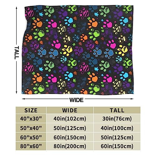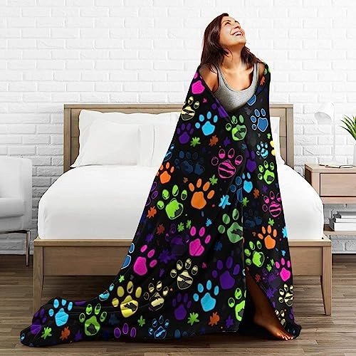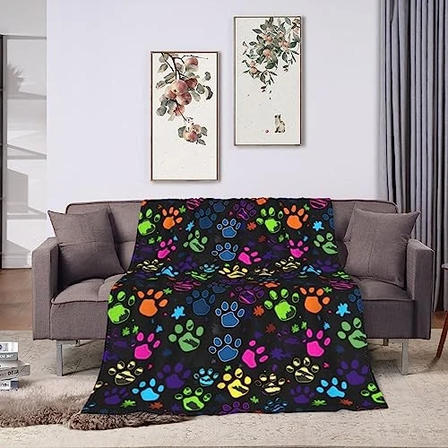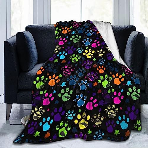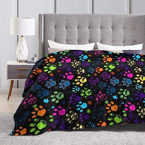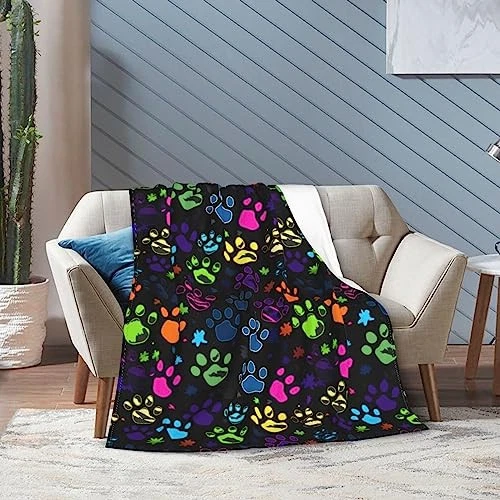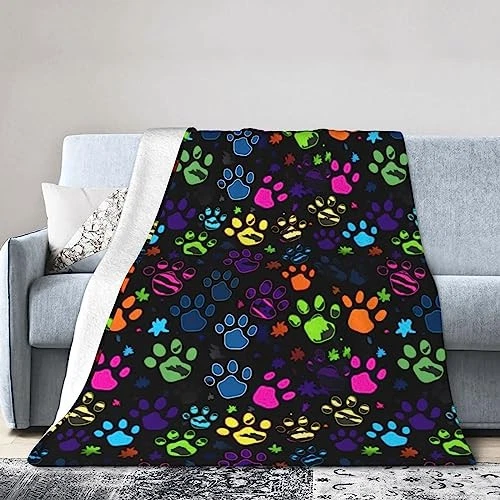 Colorful Dog Paw Print Throw Blanket Plush Microfiber Flannel Fleece Blanket
