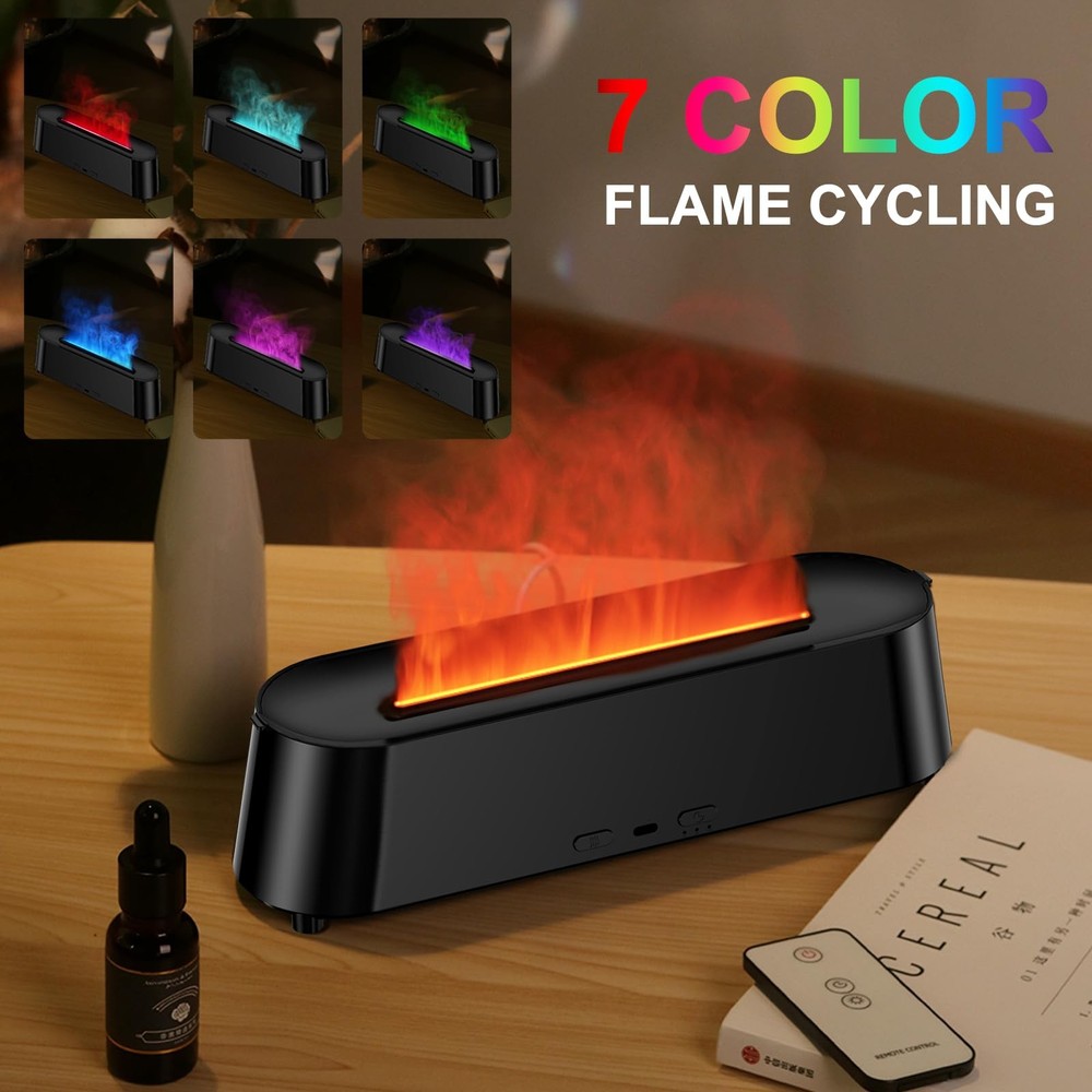 1. This flame diffuser is amazing! The realistic flickering flame effect with color-changing LEDs creates such a cozy atmosphere. Super quiet operation, easy remote control, and the mist output is perfect for large rooms. Love the timer function and auto shut-off. The soothing flame visuals with aromatherapy mist make my space feel like a spa. Works great with essential oils too!
