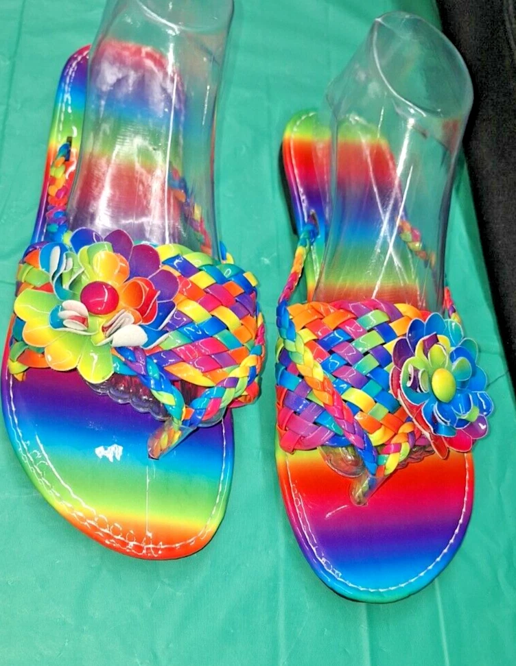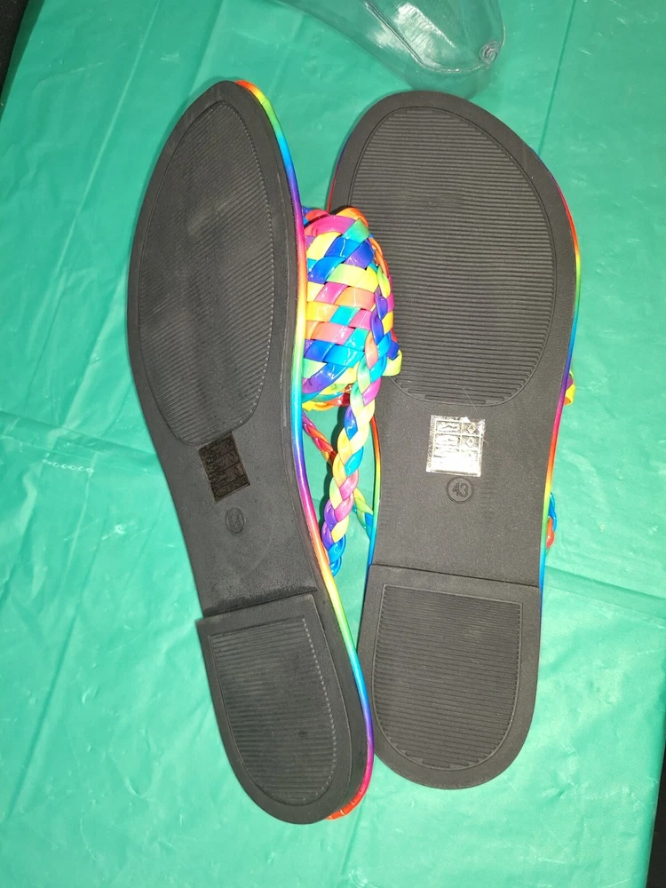 Sooo Colorful an awesome New Size 43, But I am a Size 10 to 10.5 and bought these same pair in different rainbow colors and they fit beautifully I truly believe they fit a Size 10-10.5 footwear, again on bottom is 43 THEY ARE SOOO CUTE AND STYLISH BRIGHT VIVID COLORS Fun Footwwear DONT*GO*WITHOUT VIEWING ALLLLLLLLLLLLL OUR LISTINGS, WE HAVE SOOOOOOOO MUCH MORE!!!! View all photos, use zoom, read description ---->WE DO NOT ACCEPT RETURNS<-- All items from smoke/pet free environment We do our very best to accurately describe the items. Remember, the Colors vary from pc, monitor, cell phone, tablet to actual item We try to take multiple shots-Need more pics? Just ask! :) We combine shipping PLEASE BROWSE OUR HUGE SELECTION OF ITEMS