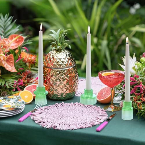 Return Policy Fast Delivery Trusted seller Colorful Glass Candlestick Holders Tealight Candle Holder Set for Table Centerpieces, Wedding Decor and Dinner Party (3 Pcs, Green White Gradient) Product Description TAPER GLASS CANDLESTICK HOLDERS:Modern tapered glass candle holder has a chic shape, suitable for a variety of candle sizes, is a great choice for parties, birthday,Christmas,Valentine's Day, Anniversary, Mother's Day, Housewarming and wedding. SMALL TEALIGHT CANDLE HOLDERS:The tea light candle holder has very thick vertical stripes glass walls for durability. The bulk votive candle holder set is great for home decor. SIMPLE PILLAR CANDLE HOLDER:The elegant pillar candle holders are made of high quality lead-free glass, non-toxic, odorless and environmentally friendly. Each candlestick holder is made entirely of clear glass, and the smooth surface highlights the luxury and crystal clear features. DECORATIVE CANDLE STAND:The vertical striped glass candle holder is a great decoration for the holiday table, and its weight is large enough to ensure that it will never tip over when the candles are placed in it. VERSATILE MODERN CANDLE HOLDER:Our candlesticks are suitable for candles with diameters from 0.75 inches to 2.2 inches.The beautiful vertical pattern candlestick is an excellent choice for gifts. Shipping Returns Payment Shipping Shipping is FREE to all addresses other than APO/PO boxes in the lower 48 states. All our stock ships from US-based warehouses. Shipped via USPS or UPS (depending on location and package weight) Unless stated otherwise, all orders will ship within 24-72 hours of your payment being processed. Check our feedback to see the great reviews of FAST shipping we offer. Returns Seller does not accept returns Payment We currently accept payment via eBay managed payments only. Once payment is cleared, we will dispatch your shipment within 1-3 business days. Please refer to the "Shipping" tab for more information regarding shipping speed to your destination.
