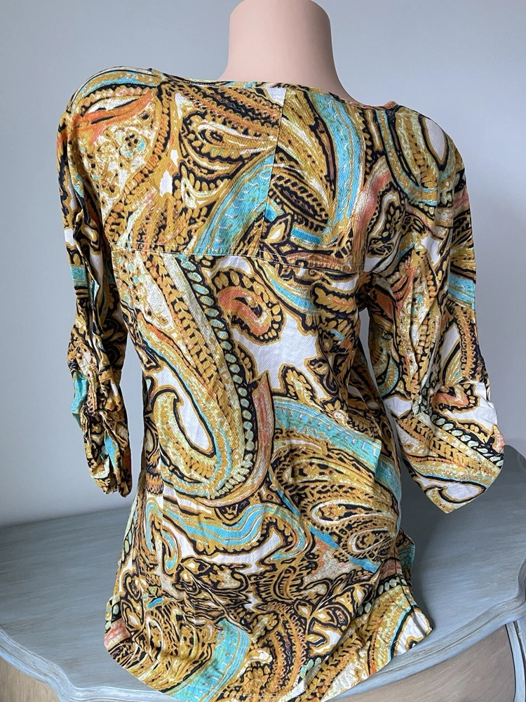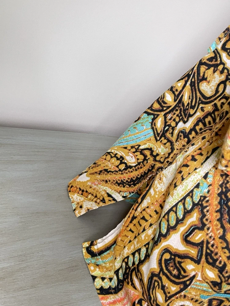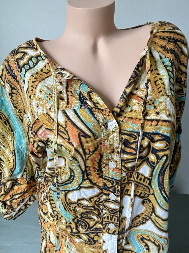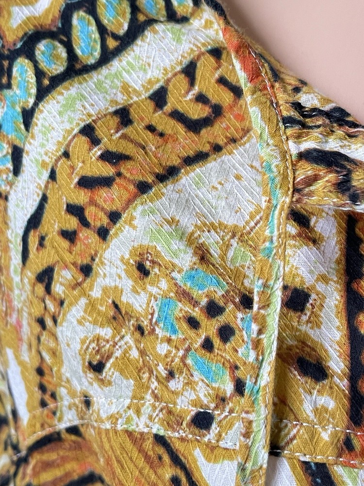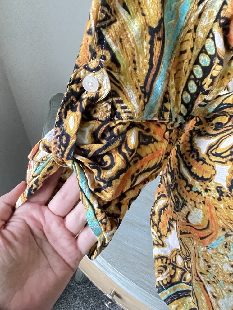Geek, Hippie, Indian, Nerd, Peasant, Retro, Teacher, Elegant, Boho bohemian gypsy gypsie hippie hippy hippey fairy, Herringbone Texture, Summer Rich Colors, Colorful bold bright vivid loud fun lively dopamine poppin, Colourful, Ladies Women Womens, Free returns combined shipping, Lightning fast shipping ship shipment same or next day, Beach town streetwear beachy summer summery sun sunshine, Coastal grandma coast ocean florida tropical, Vacation vibes sun fun cruise tiki cabana happy hour, Summer vacation vibes island resort wear exotic, Gold, brown black, coral peach teal blue green, Whimsy whimsical boutique eclectic, Weekend wear daywear lounge fashion easy, Tunic Blouse Shirt Pullover Button Up Tie Neck Split V