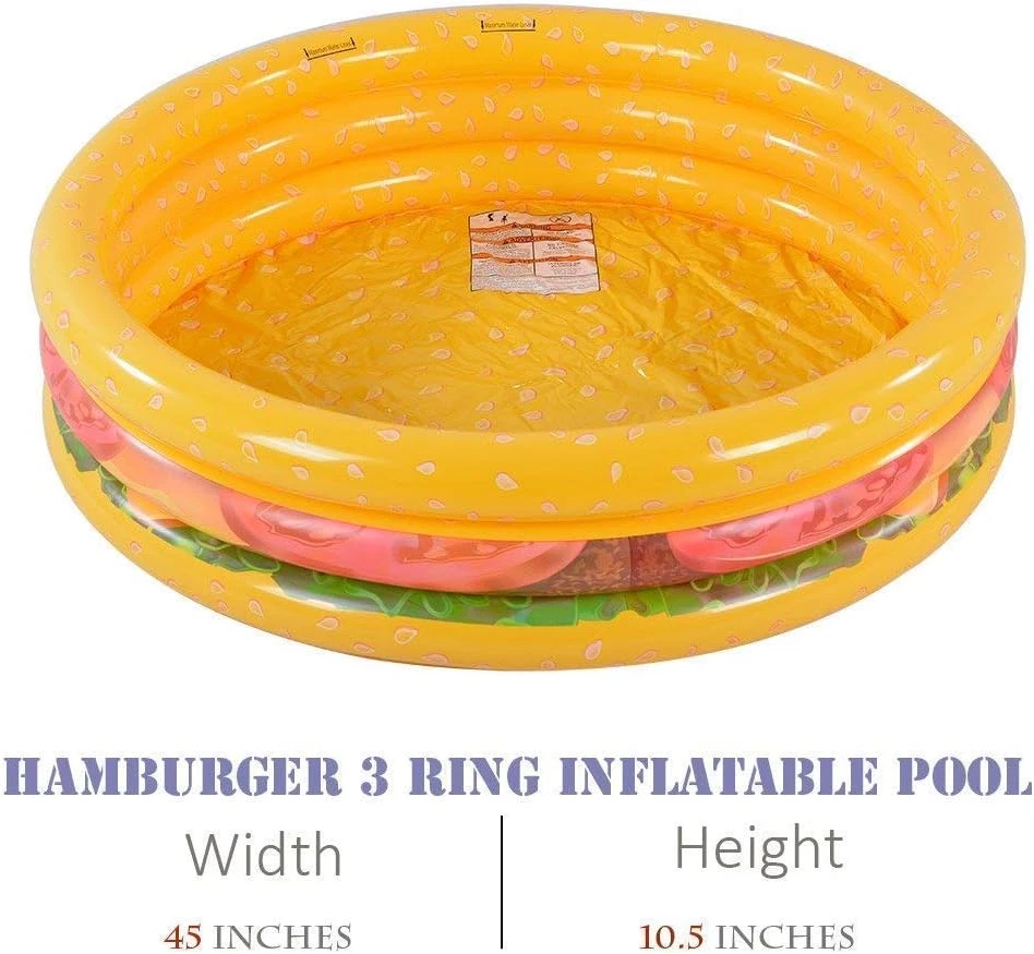 Colorful Inflatable Kiddie Pool with Watermelon and Hamburger 3 Ring Design for Fun Outdoor Play