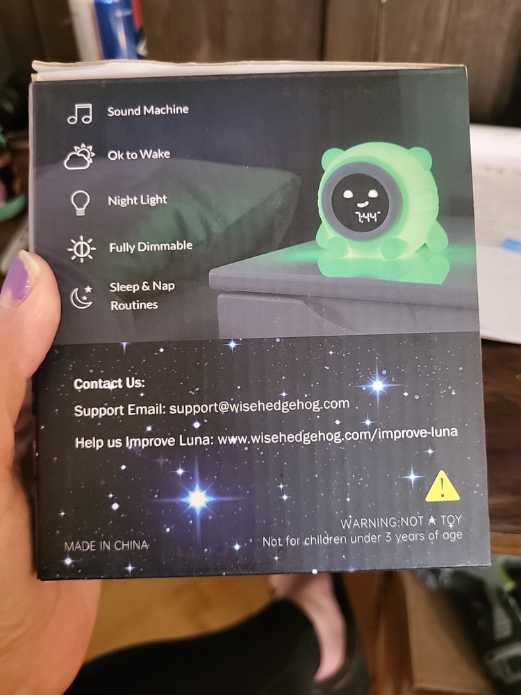 Kids alarm clock, night light sound machine . dimmable face and child safe silicone